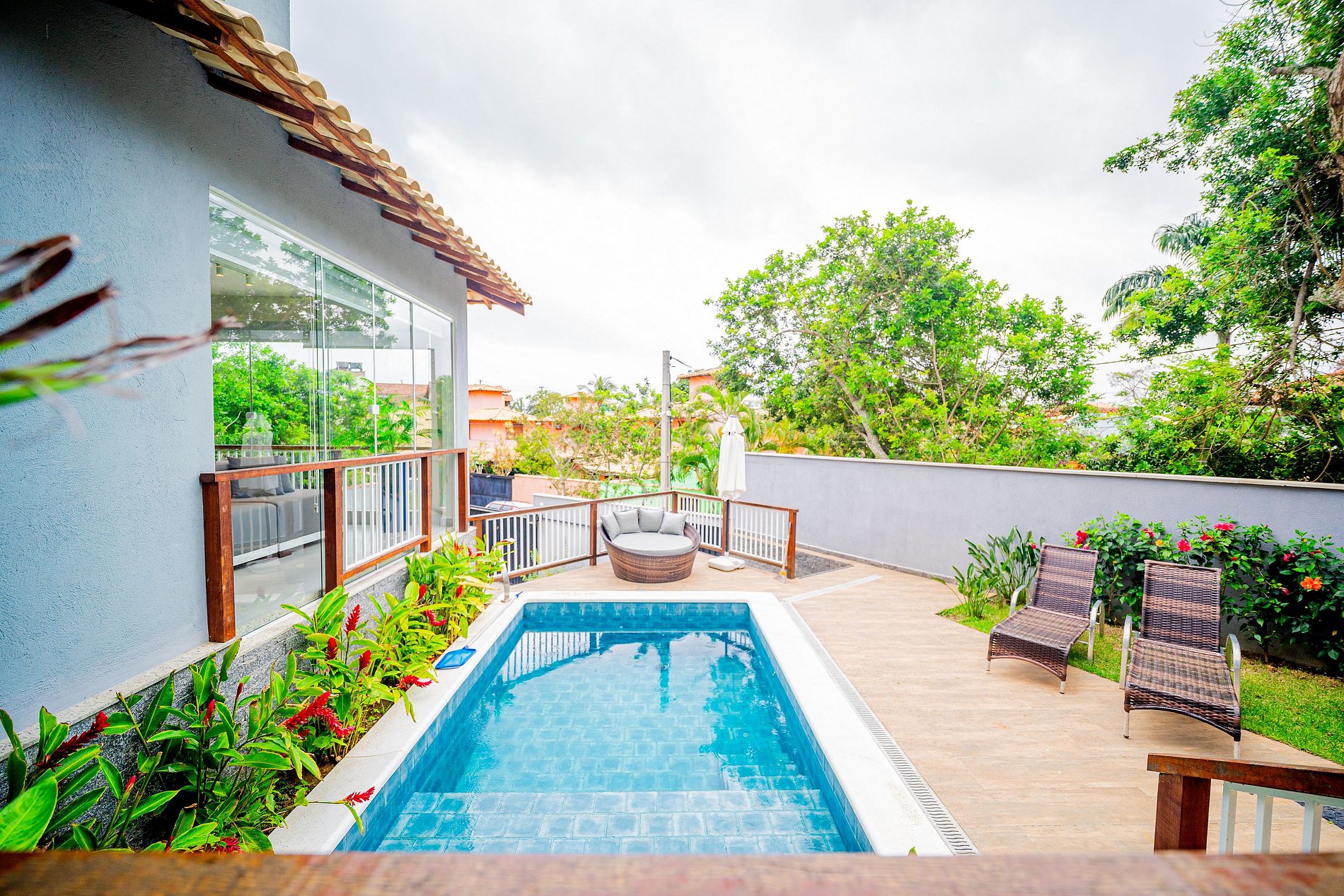 7 - Não é permitido fumar no interior da casa e nem sentar molhado em estofados de interior;