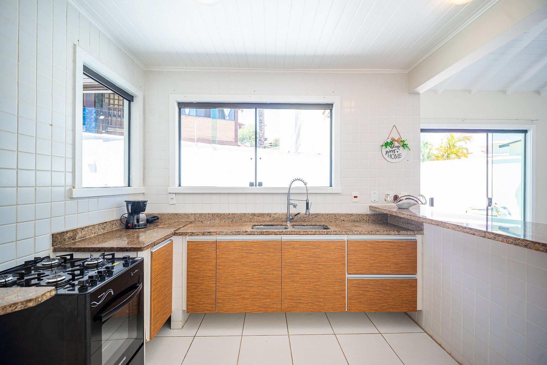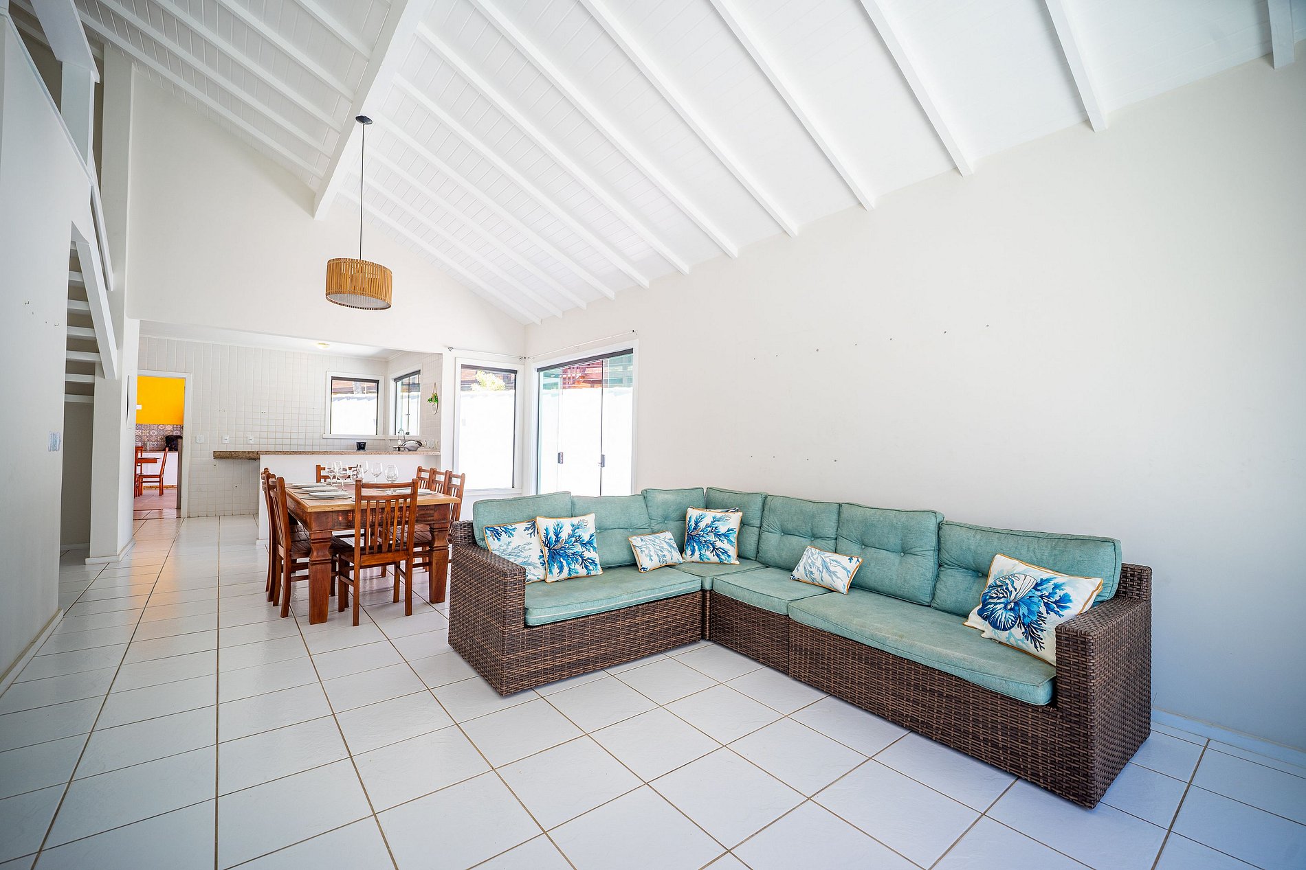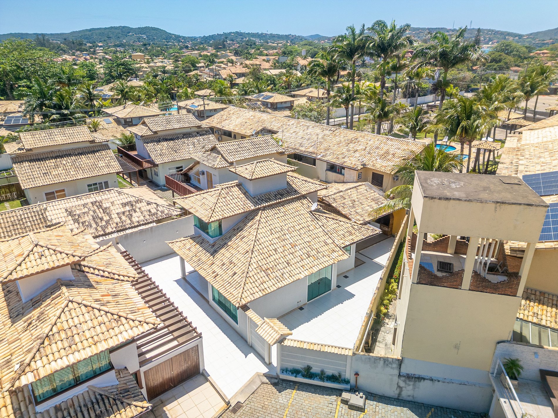 This modern and spacious house is located on the right side of Geribá in a gated community, just 200 meters from the beach.