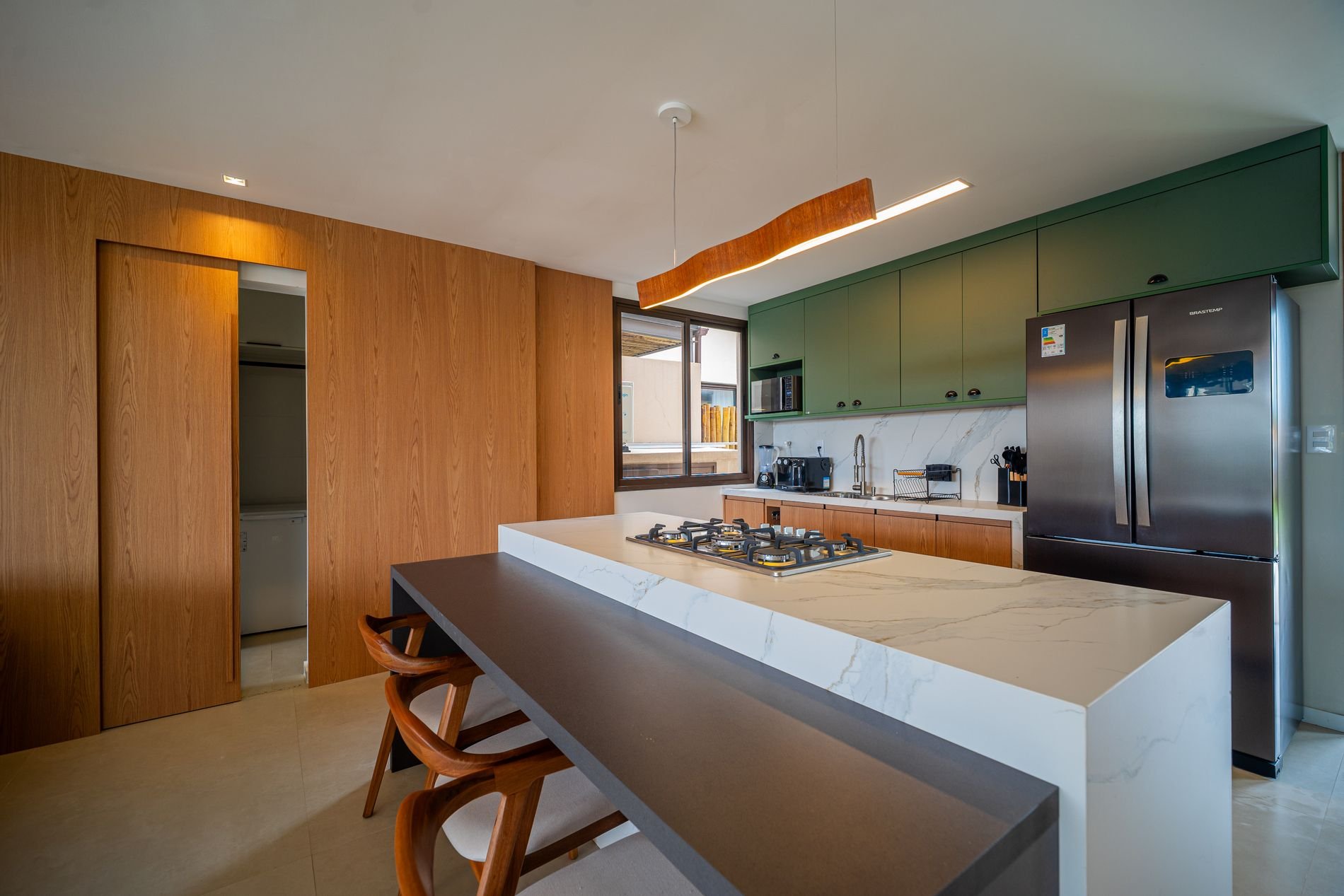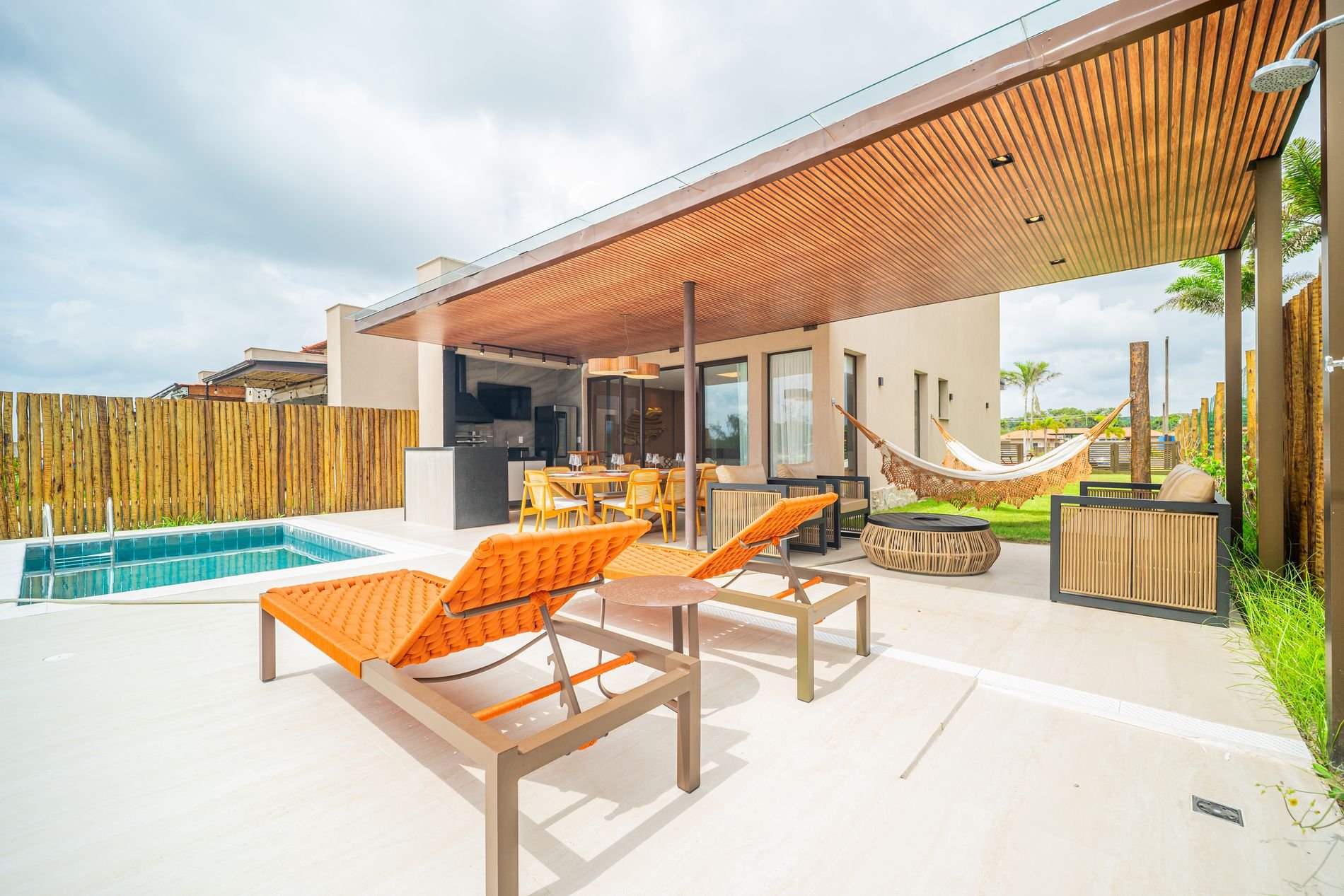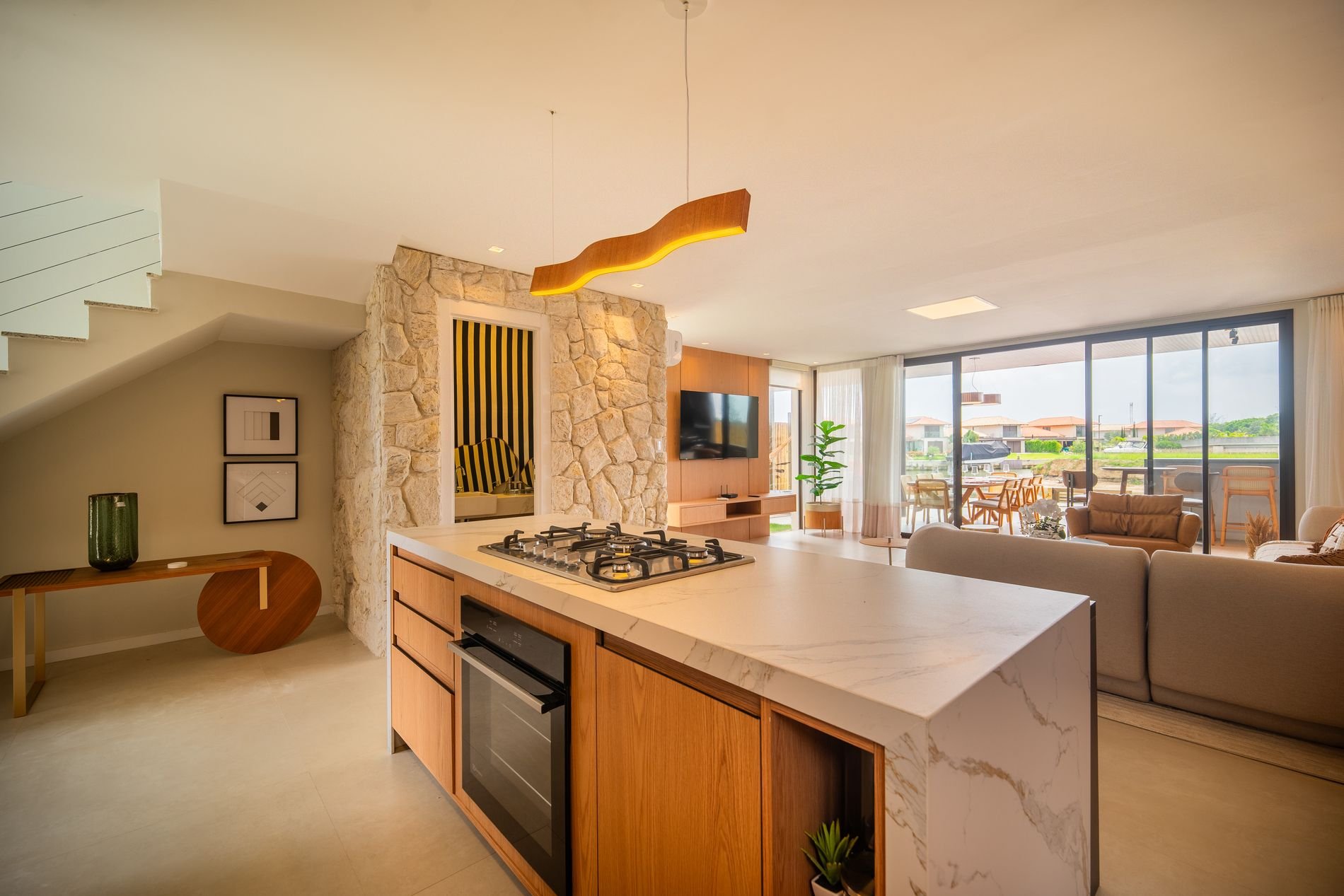 Located in the sophisticated Aretê condominium in Búzios, our house features an open living room and a fully equipped kitchen, designed to provide comfort, convenience, and unforgettable moments with friends or family.