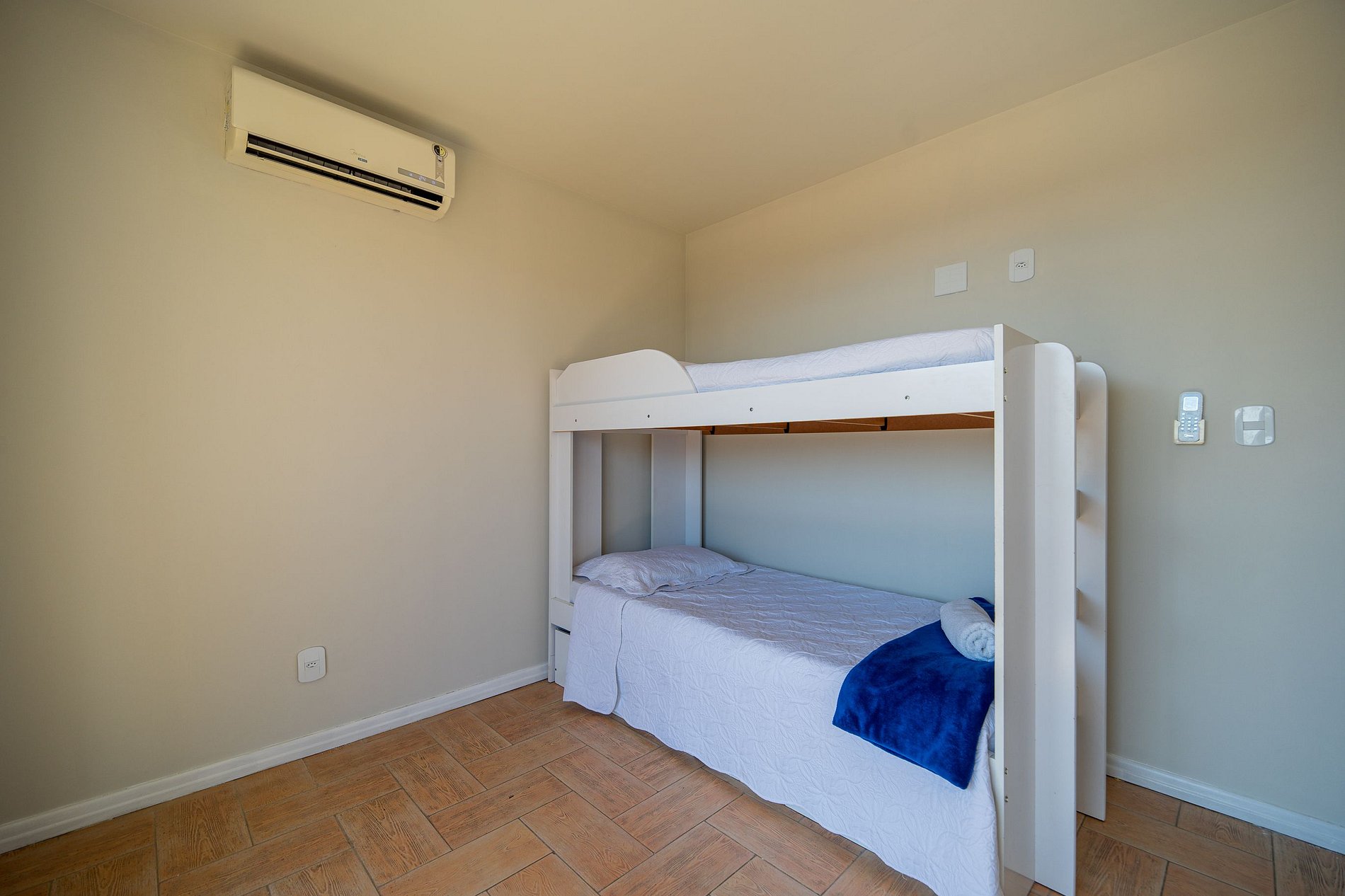 1 bedroom with single bed and 1 trundle bed and air conditioning;