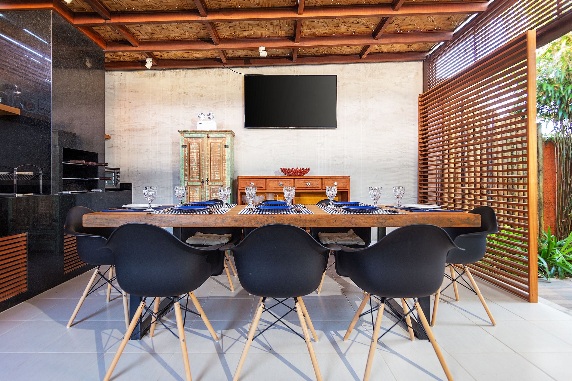 Our unit offers privacy, as the entire gourmet area in the photos, barbecue area and pool are private. So, in addition to the facilities offered, we have the option of leisure in the comfort of the property.