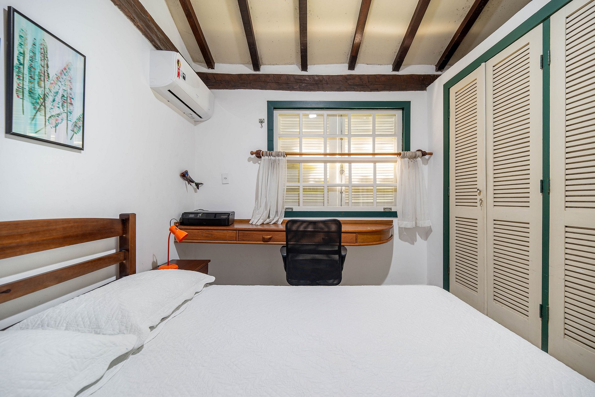 1 ground floor bedroom with 1 double bed, closets, home office bench and window air conditioning;