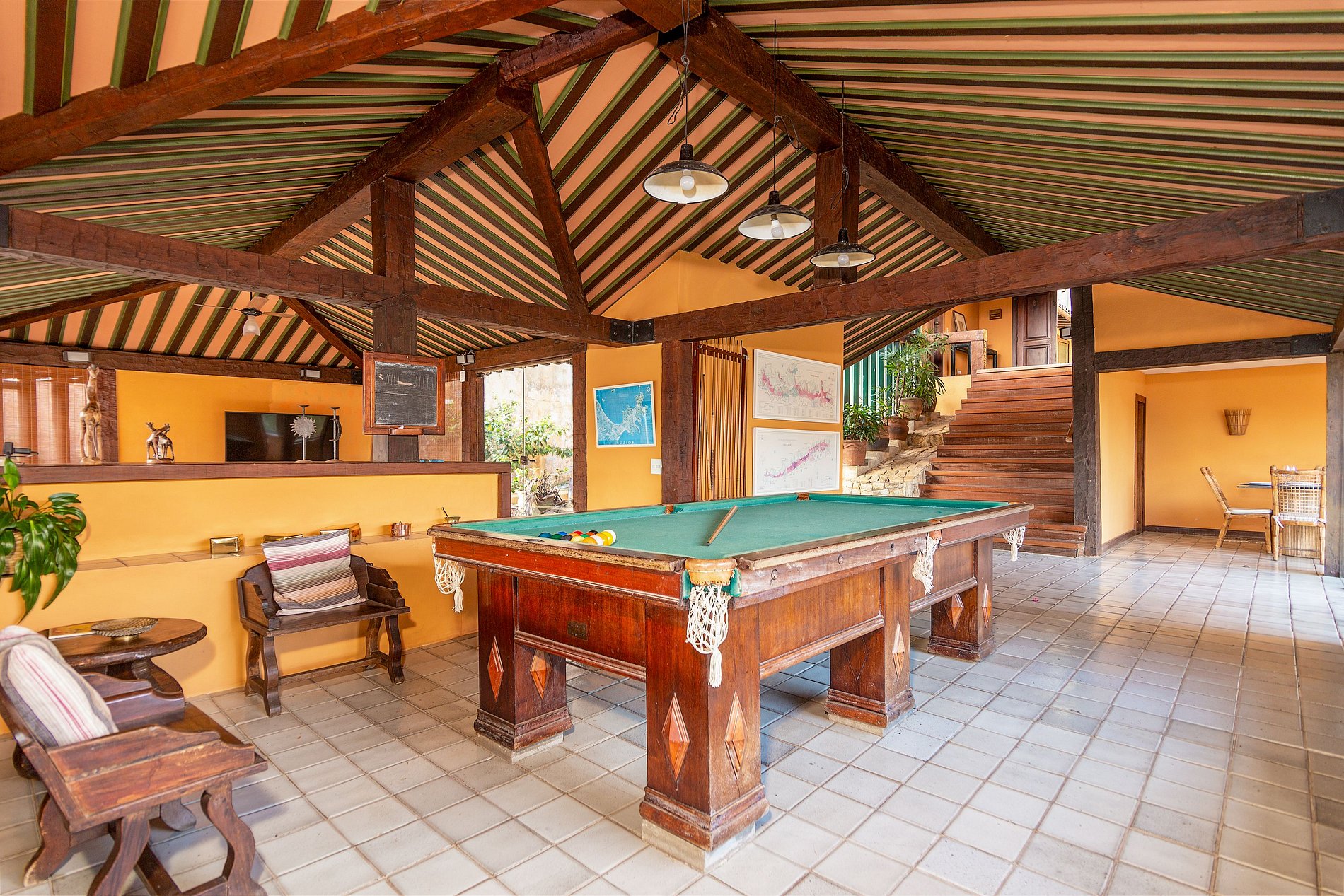 Ideal for families or groups of up to 20 people, the property offers a full kitchen, living room with pool table and balcony to enjoy leisure moments;