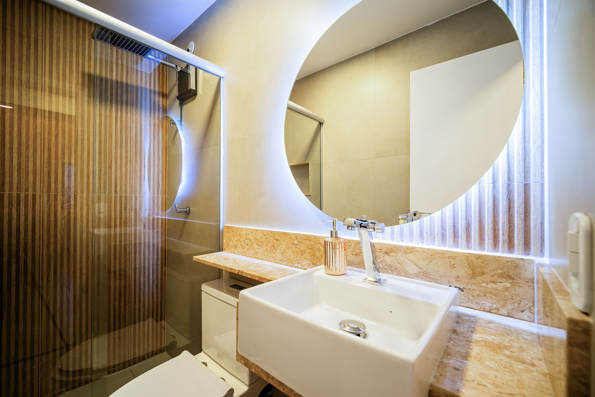 Our space offers privacy, as the entire gourmet area in the photos, barbecue area, and shower are private. In addition to the amenities offered by the condominium, we also offer the option of private leisure activities in the comfort of the property.