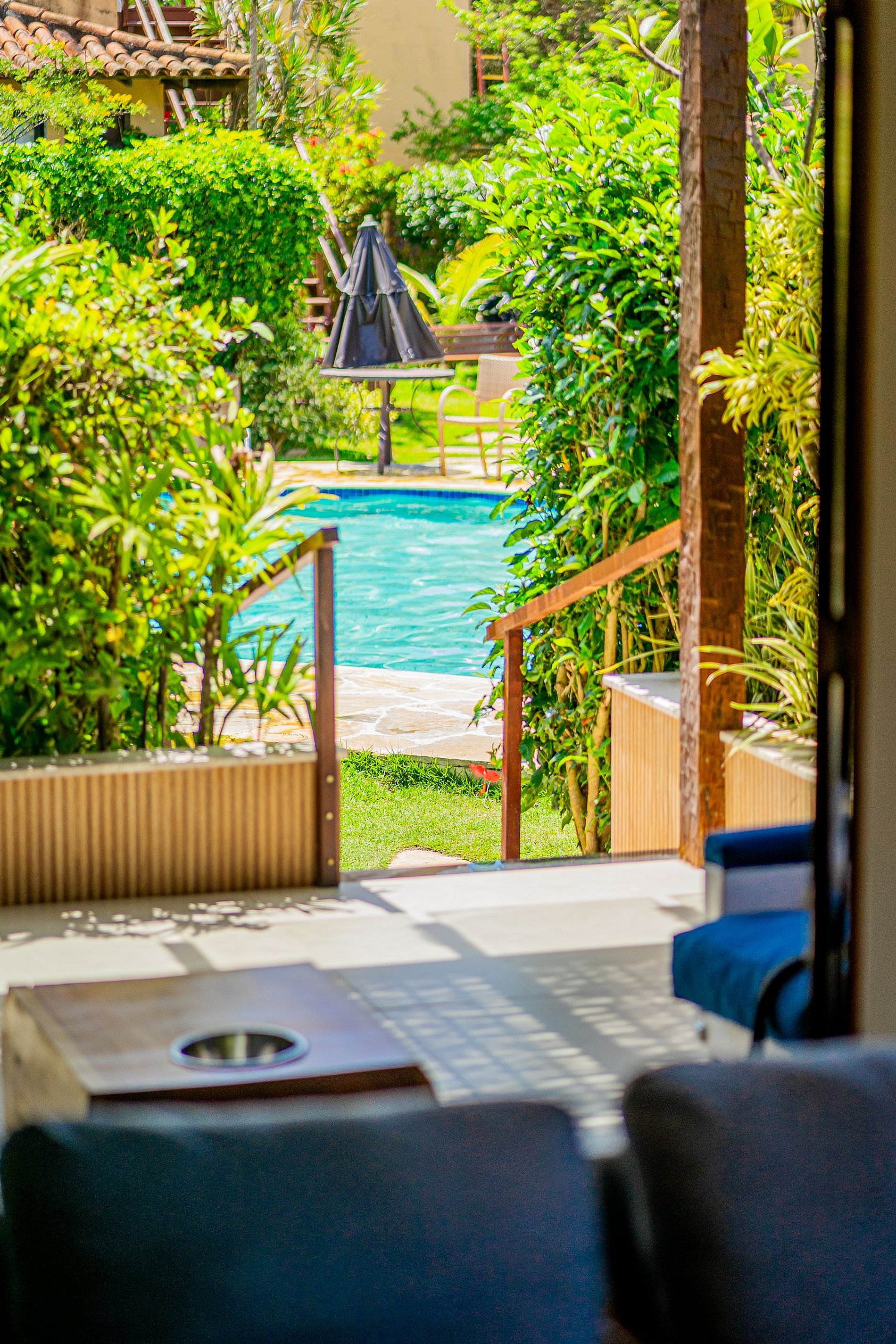 The condominium not only has beach access, but also features a 24-hour security guard, a swimming pool, a sauna, and a central barbecue area. Our house overlooks the pool (of the condominium) and has a private gourmet area with a barbecue grill and shower.