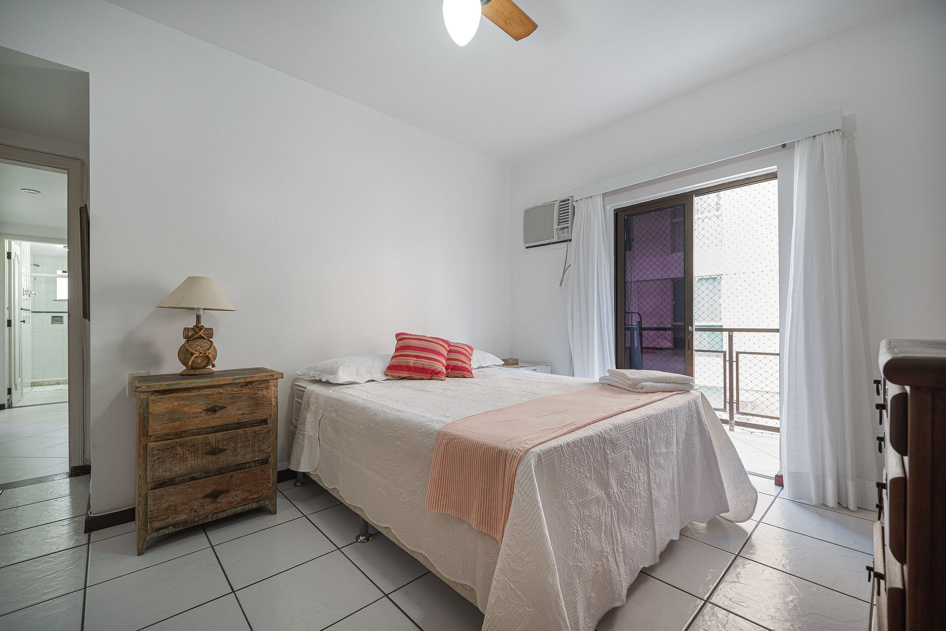 O apartamento é muito bem equipado, cozinha (fizemos almoço e café da manhã todos os dias) e banheiro com secador de cabelo super potente, cheveiro quente e com pressão (amo um banho quente...rs), área de serviço bem equipada. É muito ventilado o apto, não precisei usar o ar condicionado em nenhum dia (fiquei por 10 dias hospedada) deixando as portas abertas a temperatura fica extremamente agradável, por ser de frente para o mar venta bastante. As camas são limpas e confortáveis, não há cheiro de poeira, mofo ou de "ambiente fechado há muito tempo". Extremamente bem localizado, basta atravessar a rua para chegar a praia. O condomínio tem salão de jogos, piscina, sauna e churrasqueira; a limpeza externa é impecável; possui porteiro 24hs e são extremamente solícitos e educados.