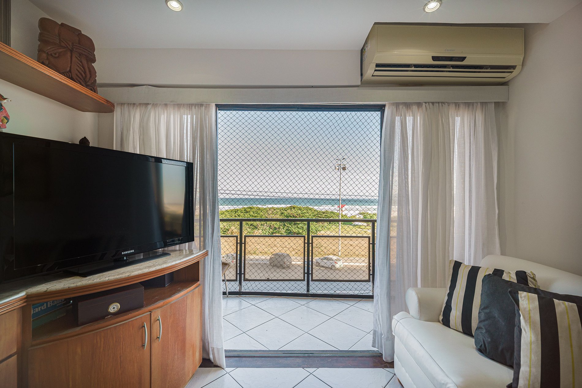 O apartamento é muito bem equipado, cozinha (fizemos almoço e café da manhã todos os dias) e banheiro com secador de cabelo super potente, cheveiro quente e com pressão (amo um banho quente...rs), área de serviço bem equipada. É muito ventilado o apto, não precisei usar o ar condicionado em nenhum dia (fiquei por 10 dias hospedada) deixando as portas abertas a temperatura fica extremamente agradável, por ser de frente para o mar venta bastante. As camas são limpas e confortáveis, não há cheiro de poeira, mofo ou de "ambiente fechado há muito tempo". Extremamente bem localizado, basta atravessar a rua para chegar a praia. O condomínio tem salão de jogos, piscina, sauna e churrasqueira; a limpeza externa é impecável; possui porteiro 24hs e são extremamente solícitos e educados.