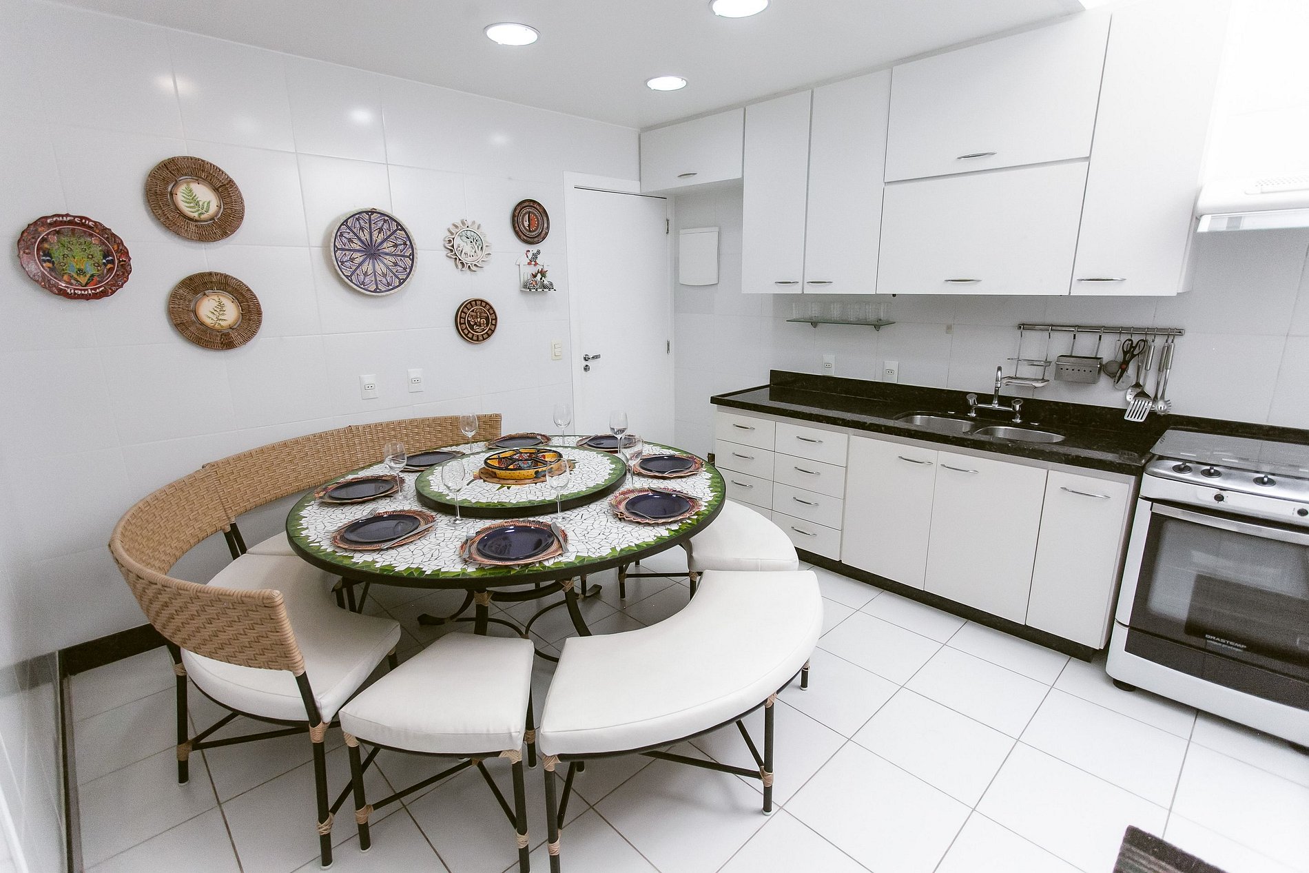 Cocina completa equipada con todos los utensilios necesarios, filtro de agua y mesa para 8 personas.