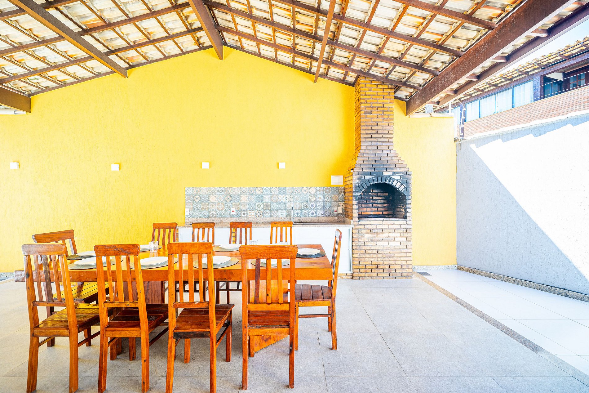 Área Gourmet, com churrasqueira e mesa para refeição externa;