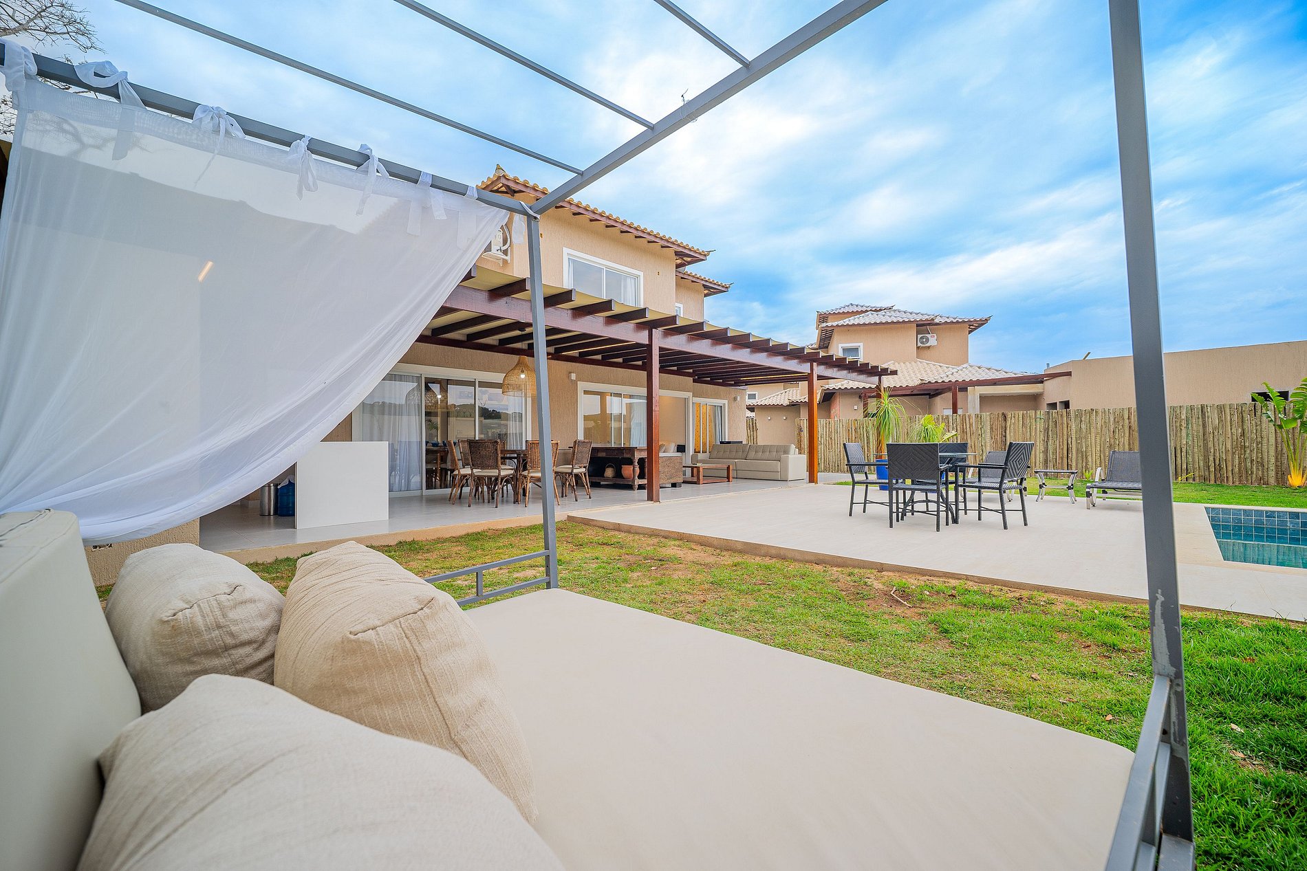La propiedad ofrece mucho confort y una estructura moderna para hasta 12 huéspedes. Cuenta con barbacoa y piscina privadas, sala espaciosa con sofá y TV inteligente, lavabo social, cocina equipada, 2 neveras Side By Side (interna y externa) y ropa de cama y baño. Brindamos una experiencia práctica y confortable para nuestros huéspedes.