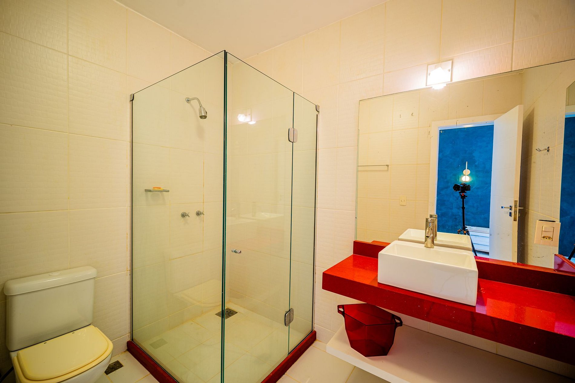 São 5 suítes climatizadas mais Lavabo social, salas amplas, áreas externas grandes com Piscina, área de sol, churrasqueira e cozinha completa (possui vasilhames, louçaria e eletrodomésticos).
