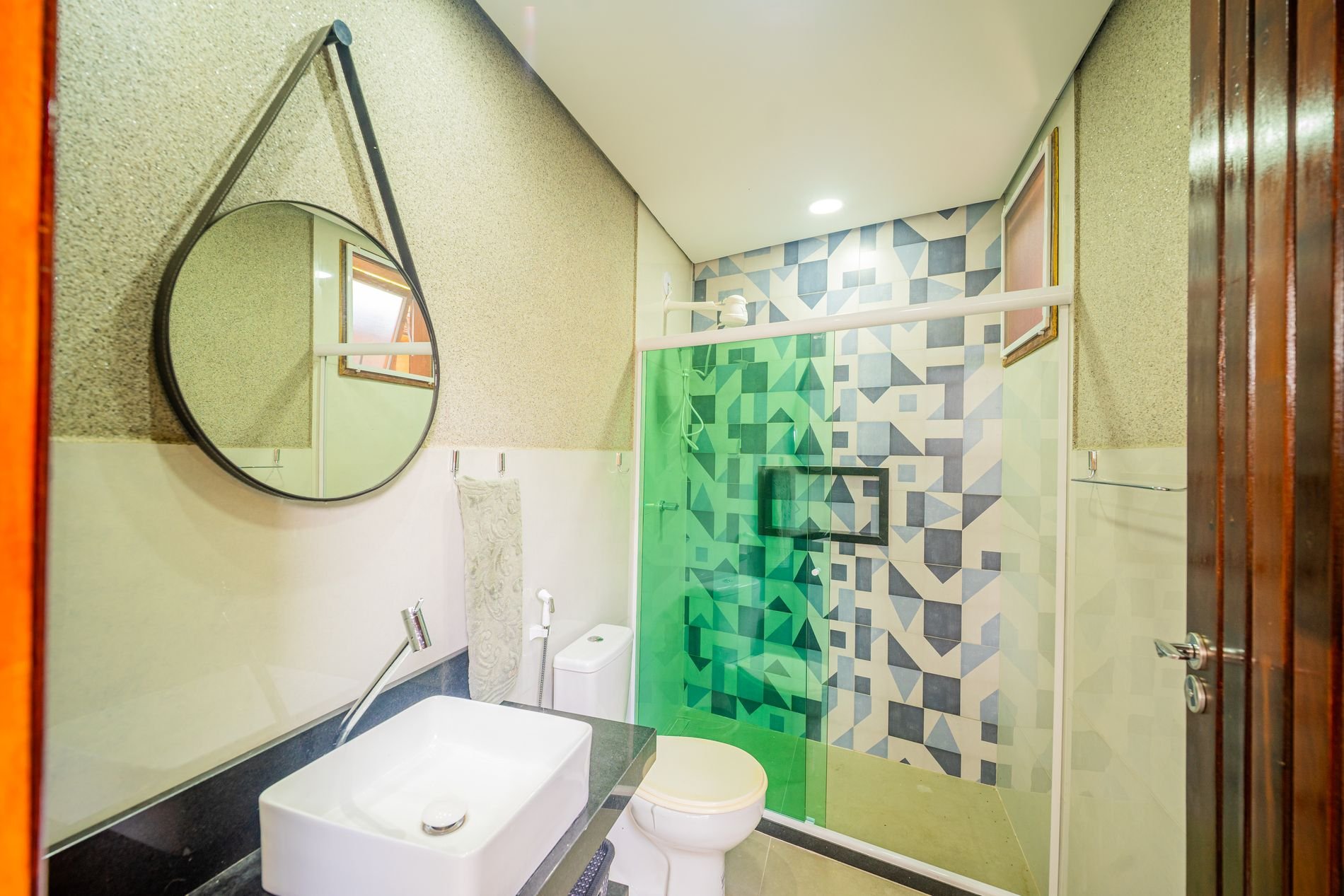 A casa está situada em um condomínio, oferecendo um ambiente seguro e exclusivo. Conta com área de lazer privativa e suítes climatizadas.