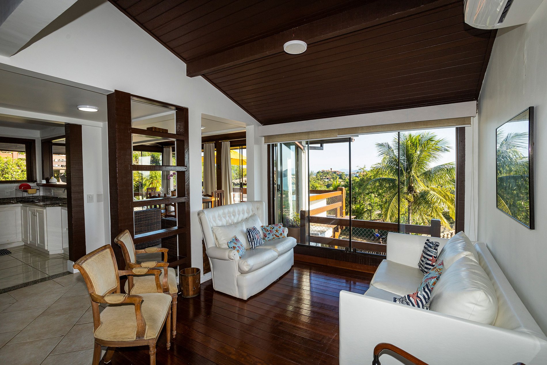 La casa cuenta con 4 suites + 2 habitaciones, todas climatizadas, que acomodan hasta 13 personas: