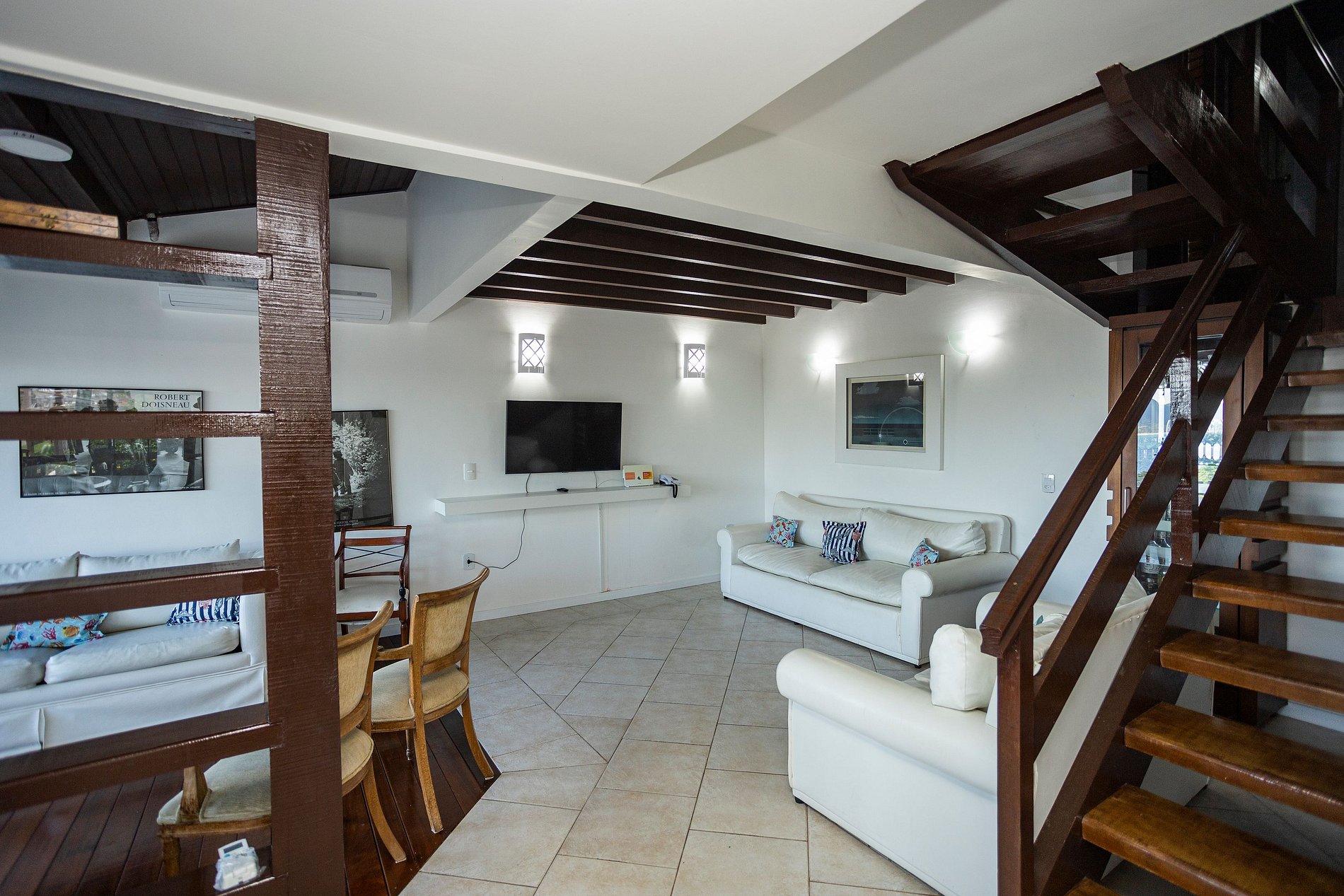 Sala de estar climatizada con Smart TV.