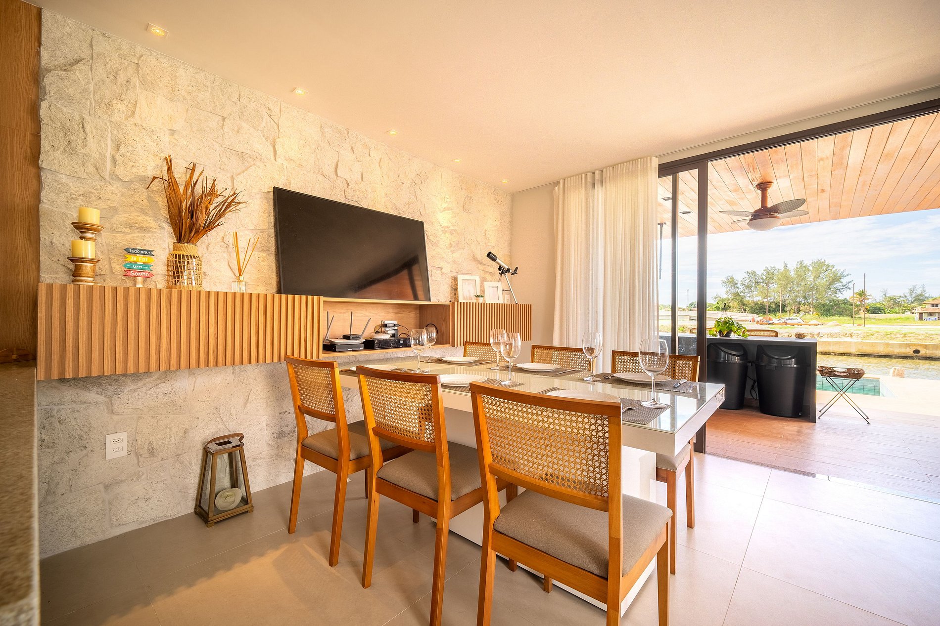 Ubicada en el sofisticado condominio Aretê en Búzios, nuestra casa cuenta con 5 habitaciones con aire acondicionado, una sala de estar integrada y una cocina equipada. El espacio está diseñado para ofrecer comodidad, practicidad y momentos inolvidables con amigos o familia. La zona exterior cuenta con piscina, espacio gourmet y muelle para motos acuáticas con acceso directo al canal.