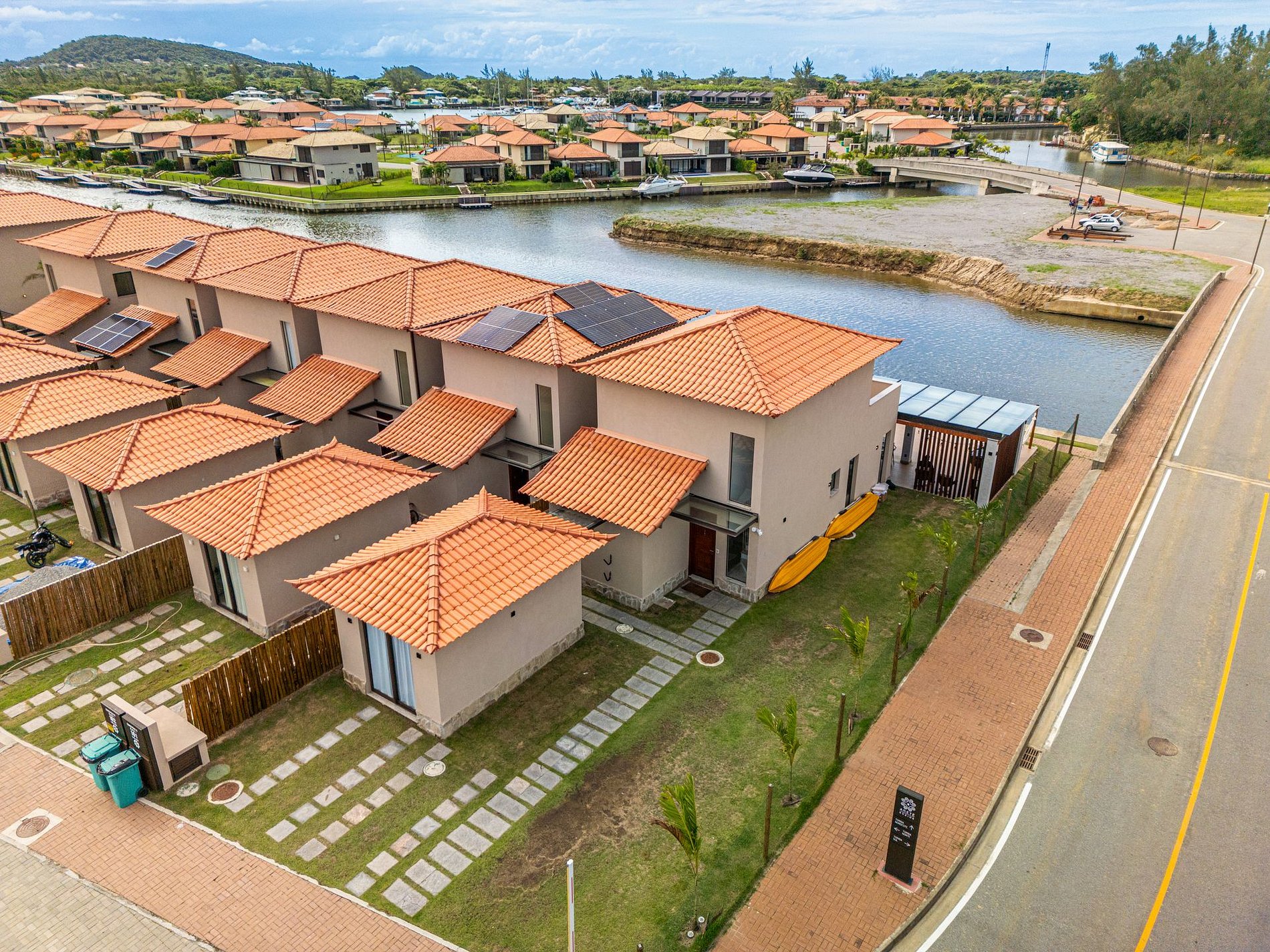 Nuestra casa está ubicada frente al canal (Toriba, sector norte B). Aretê es diferente a todo lo que haya visto en Búzios. Cuenta con caseta de vigilancia privada y seguridad las 24 horas.