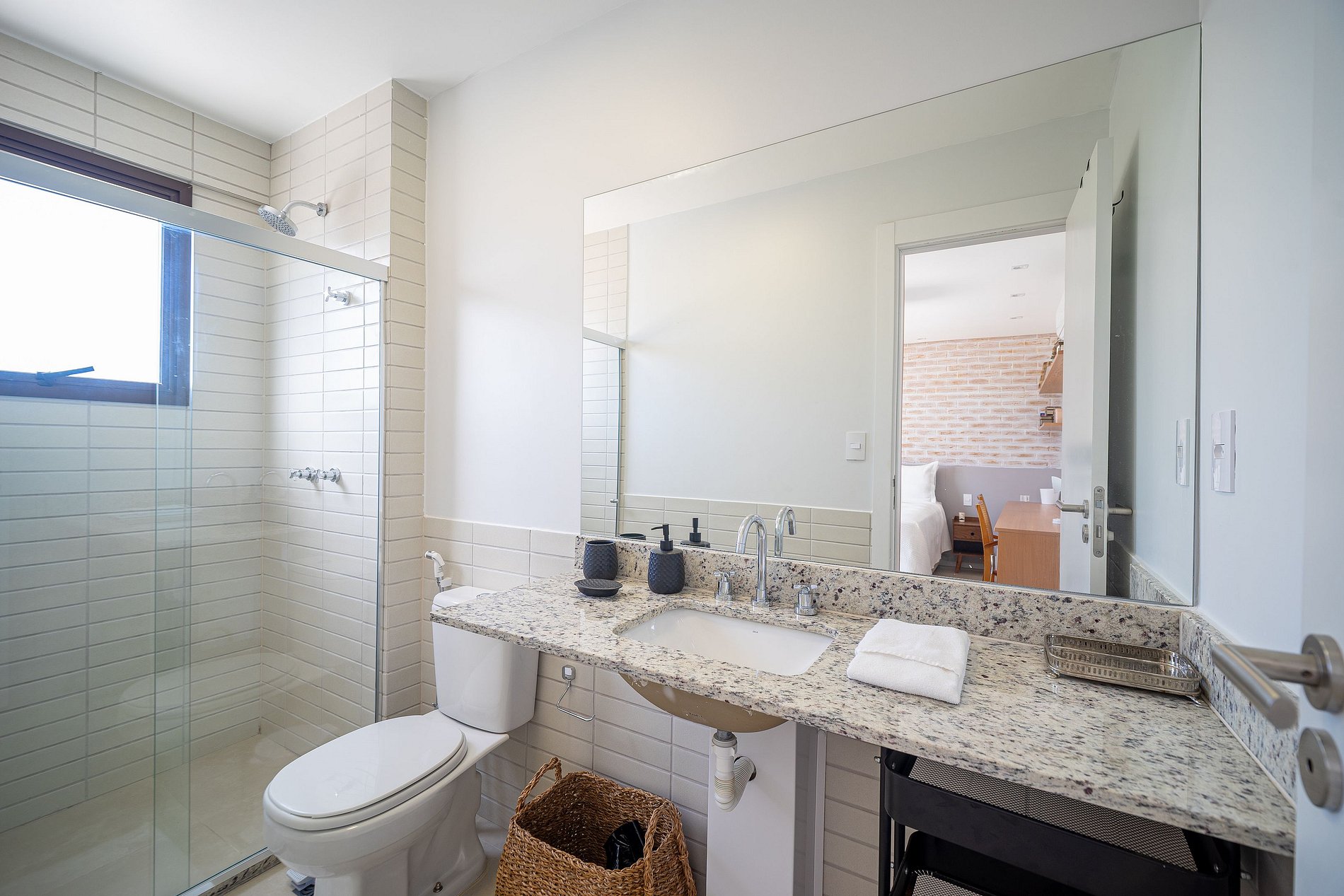 La espaciosa sala de estar está integrada con el comedor y la cocina, totalmente equipada con electrodomésticos modernos, filtro de agua y todo lo necesario para quienes disfrutan cocinando o simplemente buscan practicidad en su día a día. La conexión wifi de alta velocidad es ideal para quienes desean relajarse viendo una película o necesitan trabajar durante su estancia.