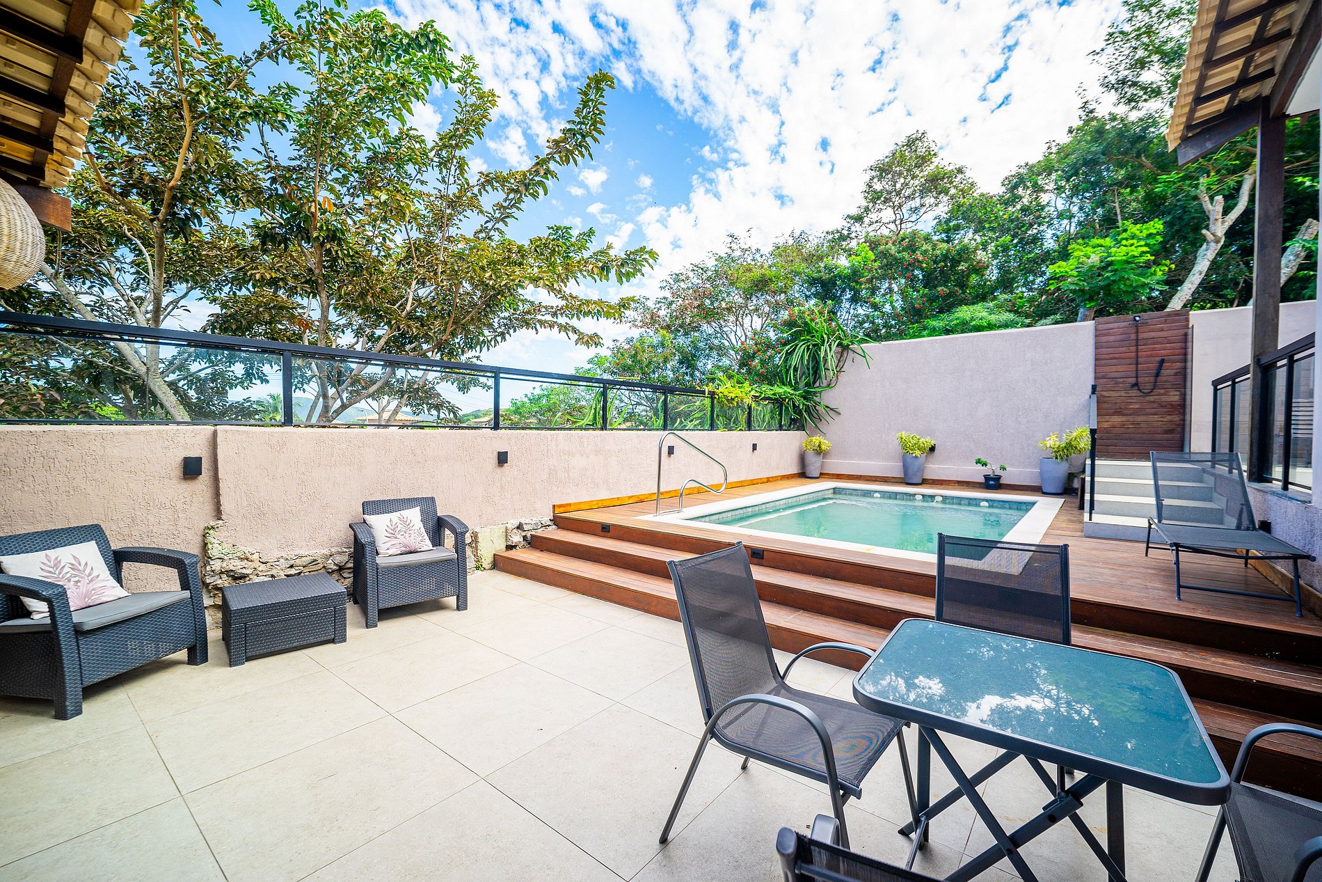 Con piscina privada, ducha, tumbonas y zona de ocio con barbacoa, es la opción ideal para quienes buscan un alojamiento completo, cerca de la playa, con instalaciones para relajarse y disfrutar de todo lo que Búzios ofrece, ya sea en familia o con amigos.