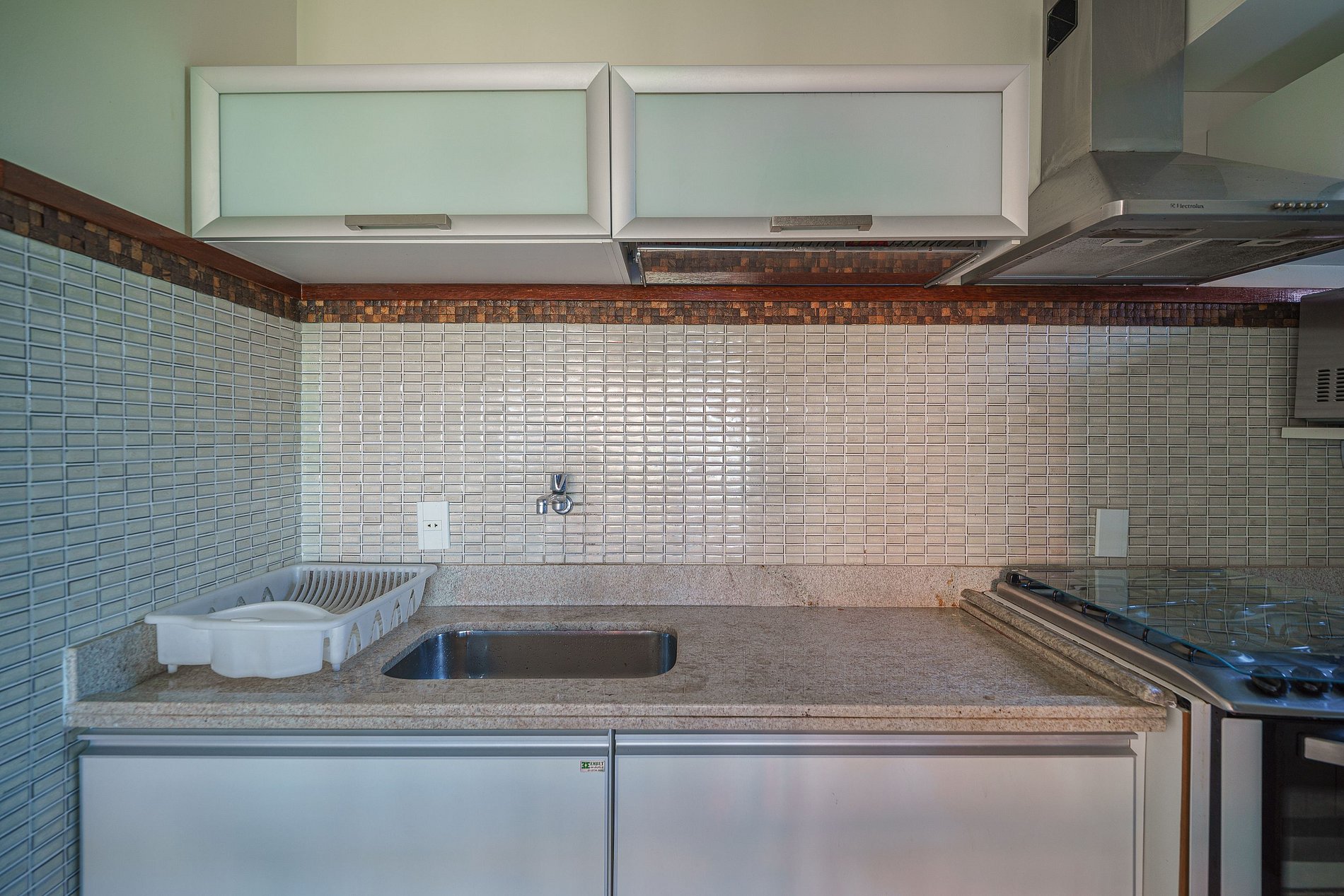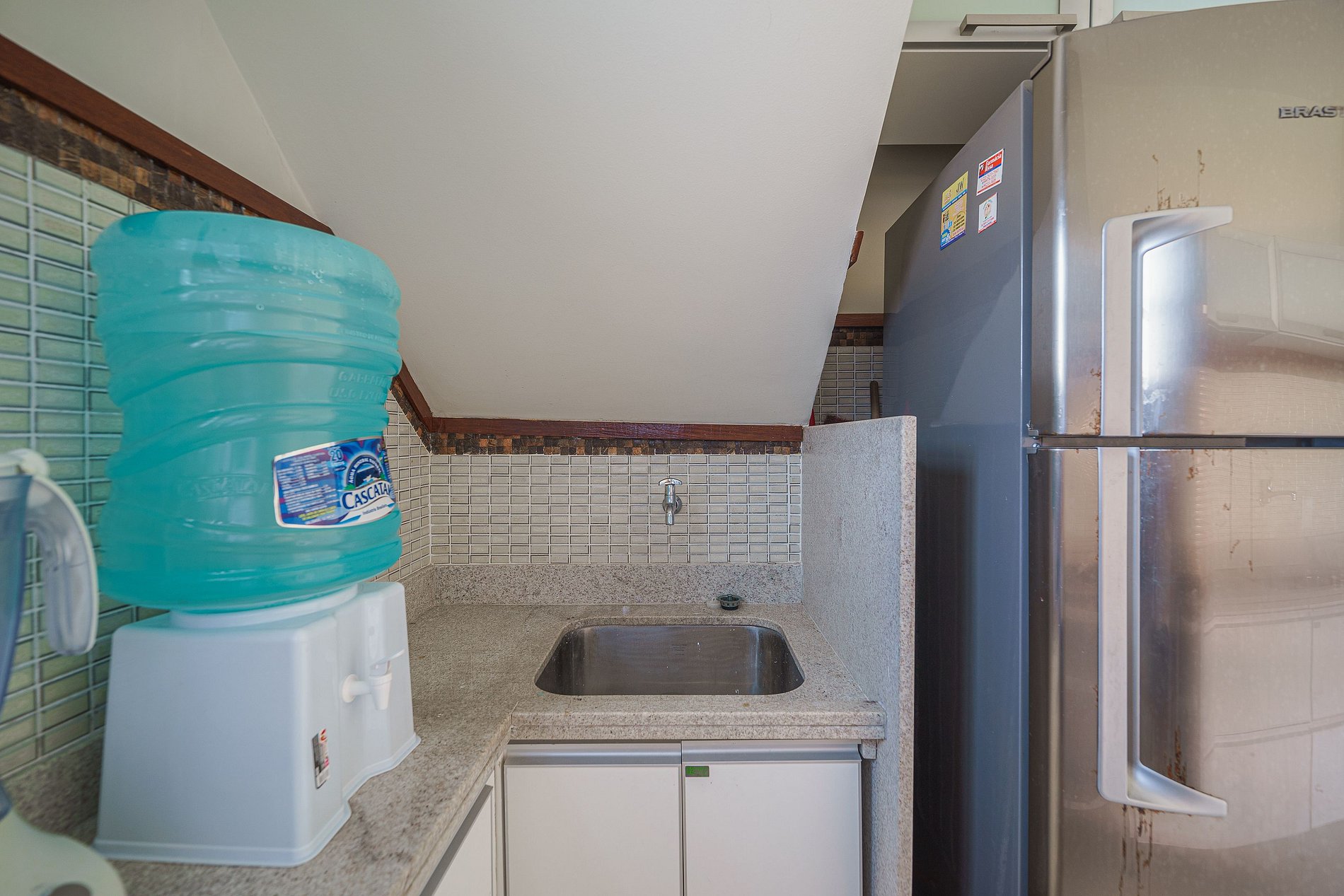 Na cozinha, temos todos os elementos que atendem perfeitamente aos hóspedes como panelas, vasilhames, acessórios, louças e talheres;