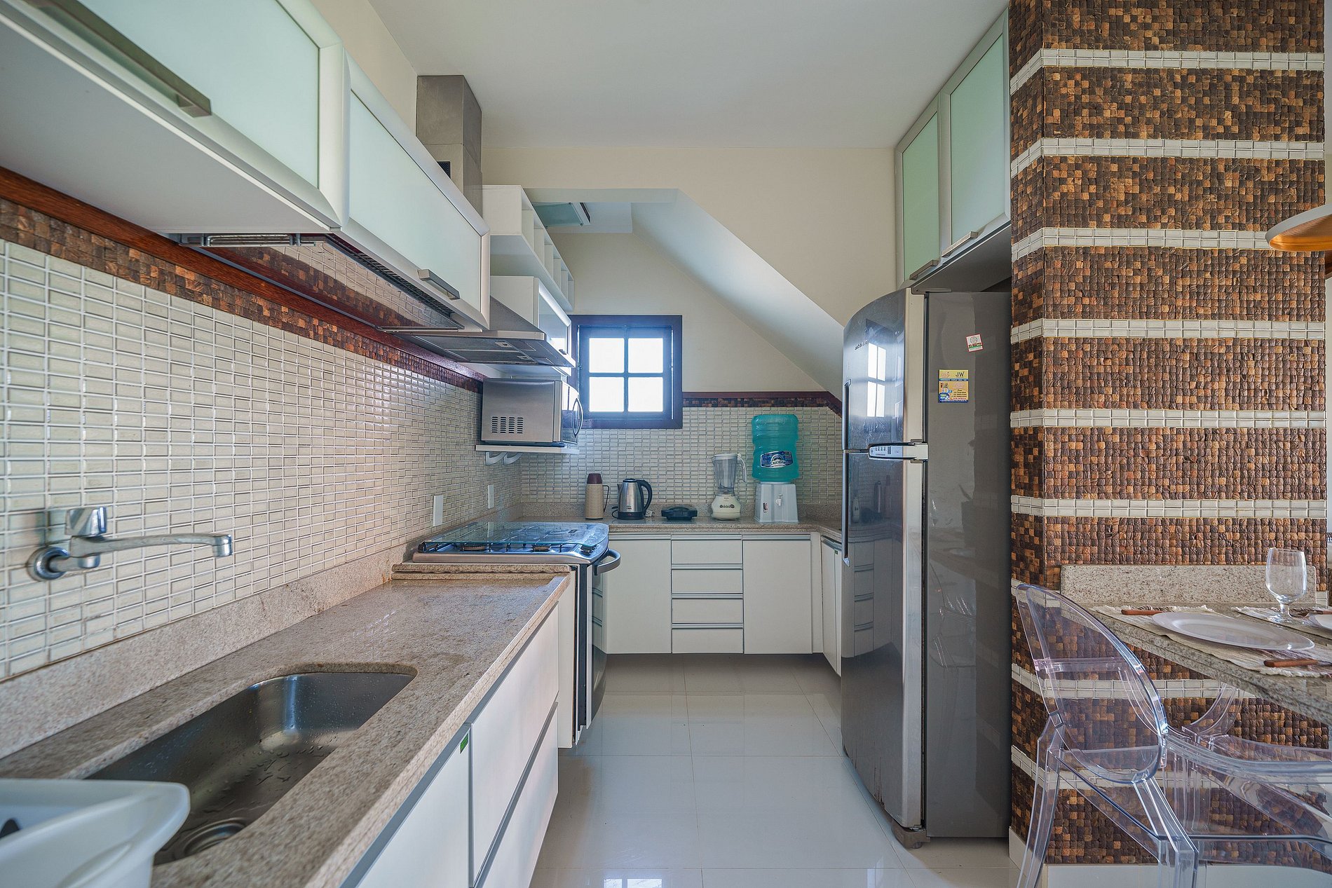 A cozinha é completa, a sala é ampla e arejada, o jardim bem cuidado, da para dormir e acordar com o som do mar.