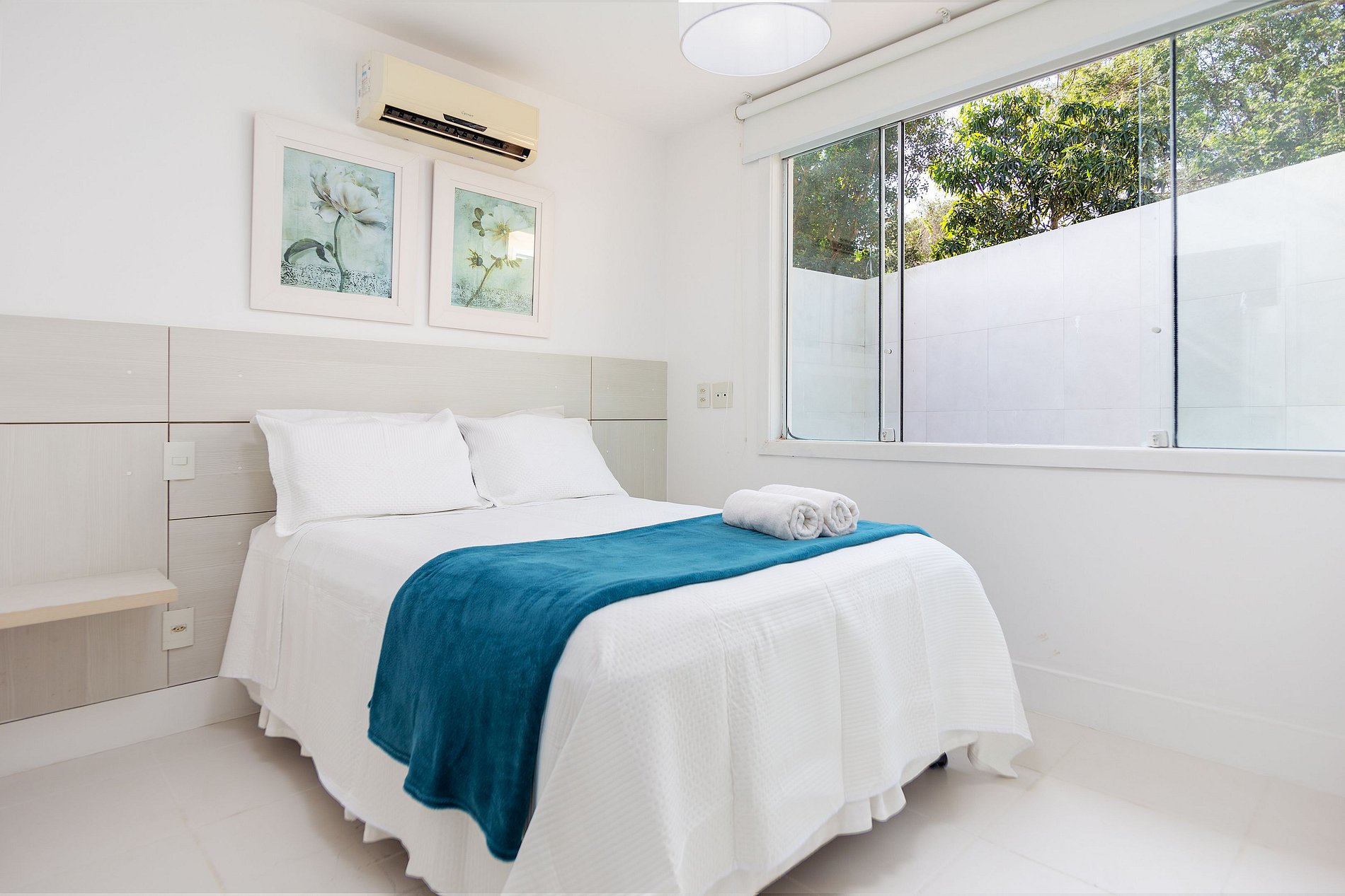 Suite 1: Master com 1 cama King reversível (pode separar e virar 2 de solteiro), ar condicionado e banheiro. (2 pessoas)