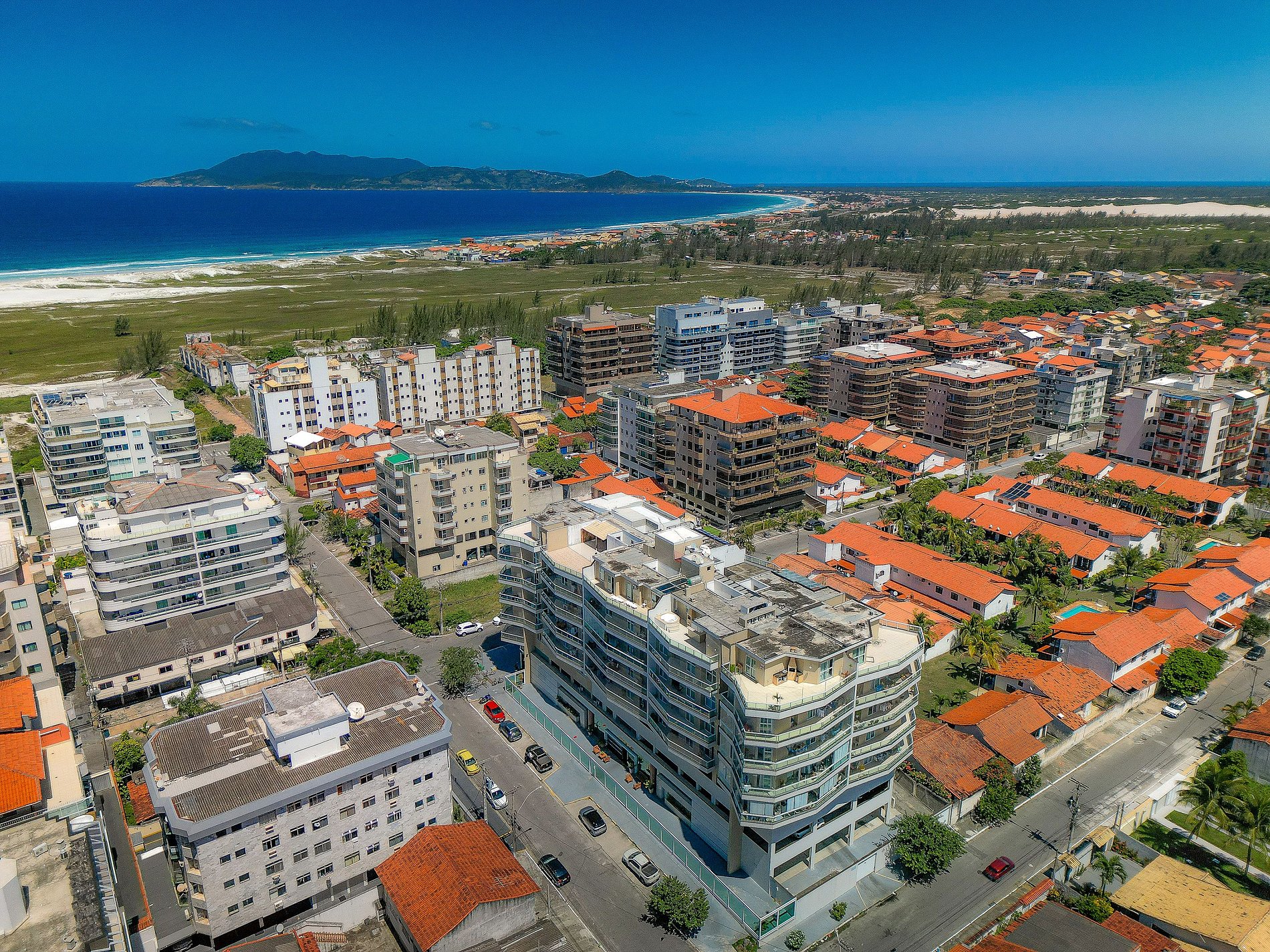 A cobertura tem 2 andares e fica em condomínio residencial no Bairro Braga a 200 metros da av. beira-mar.