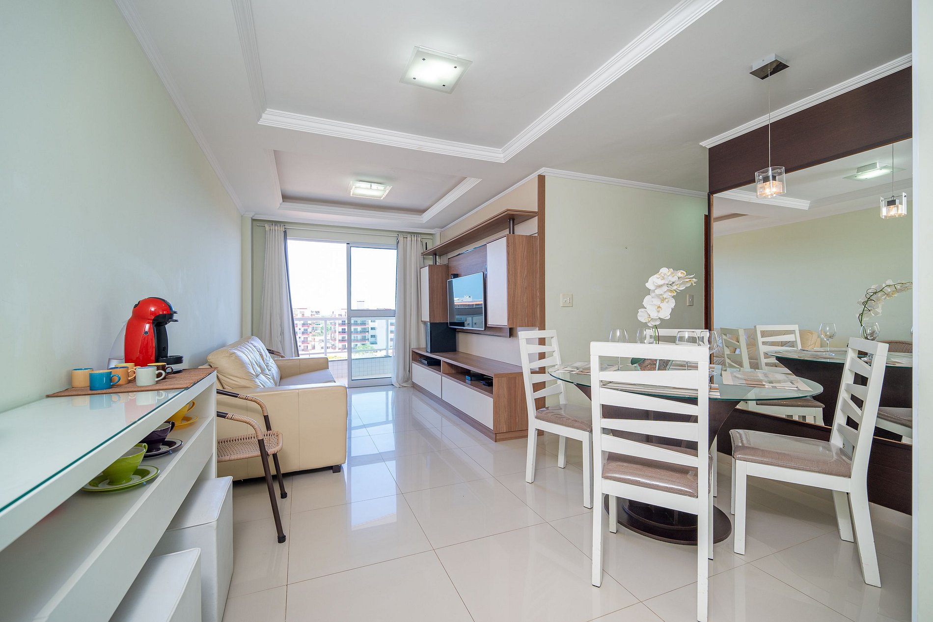Sala de estar com smart TV e e sala de jantar com mesa 4 lugares integradas;