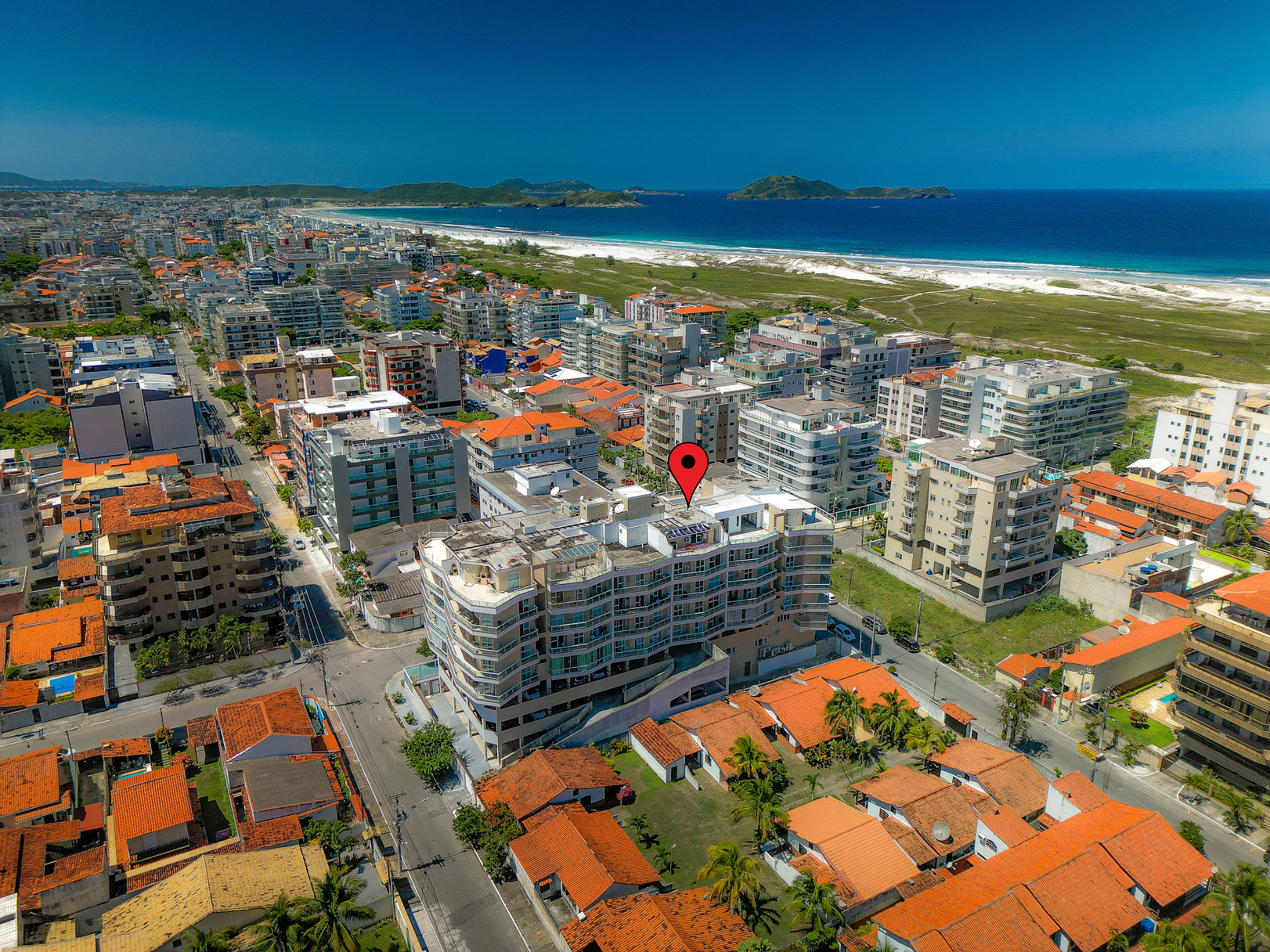 A cobertura tem 2 andares e fica em condomínio residencial no Bairro Braga a 200 metros da av. beira-mar.