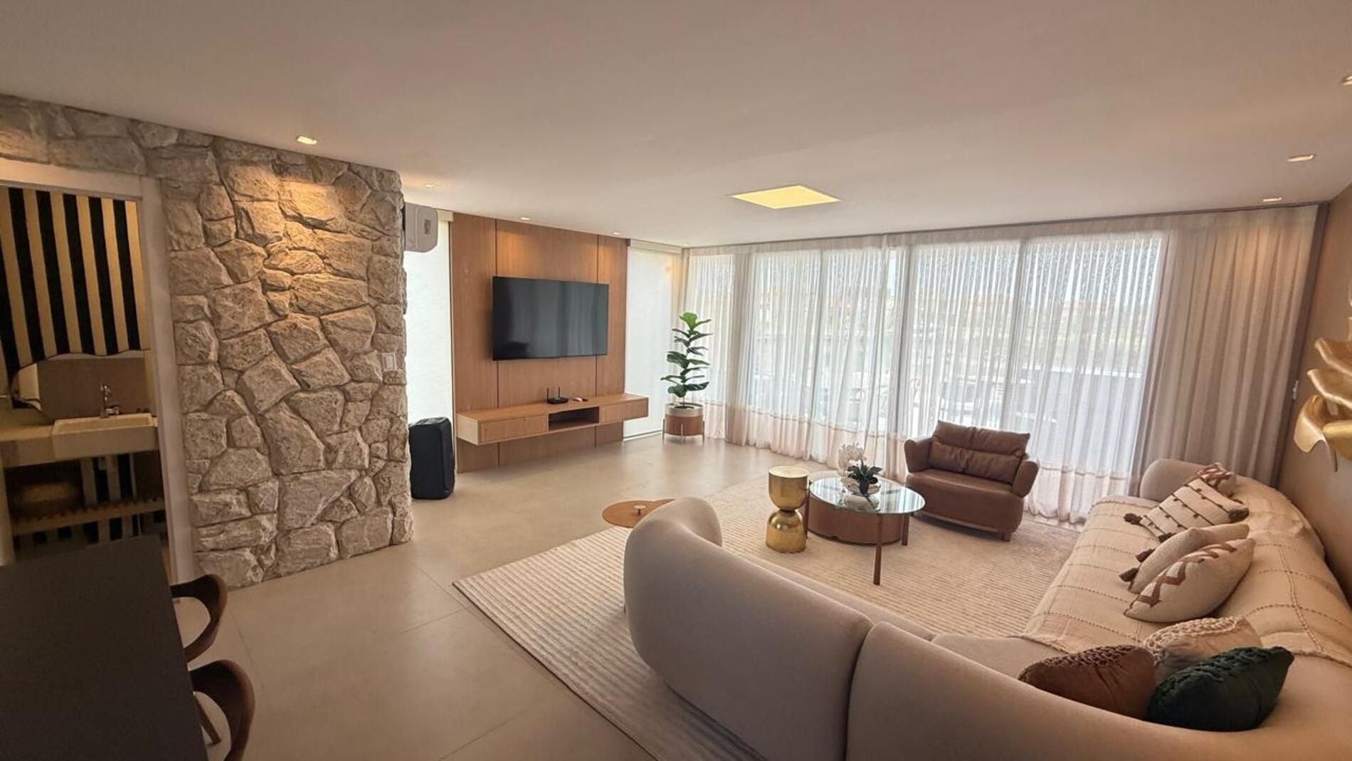 Sala de estar climatizada com smart TV;