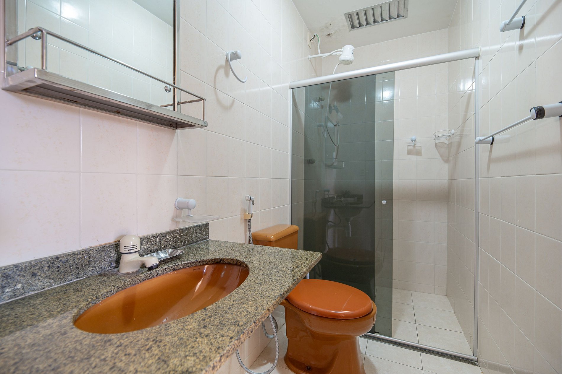 Além do banheiro das suítes o apartamento conta com 1 banheiro social com chuveiro;