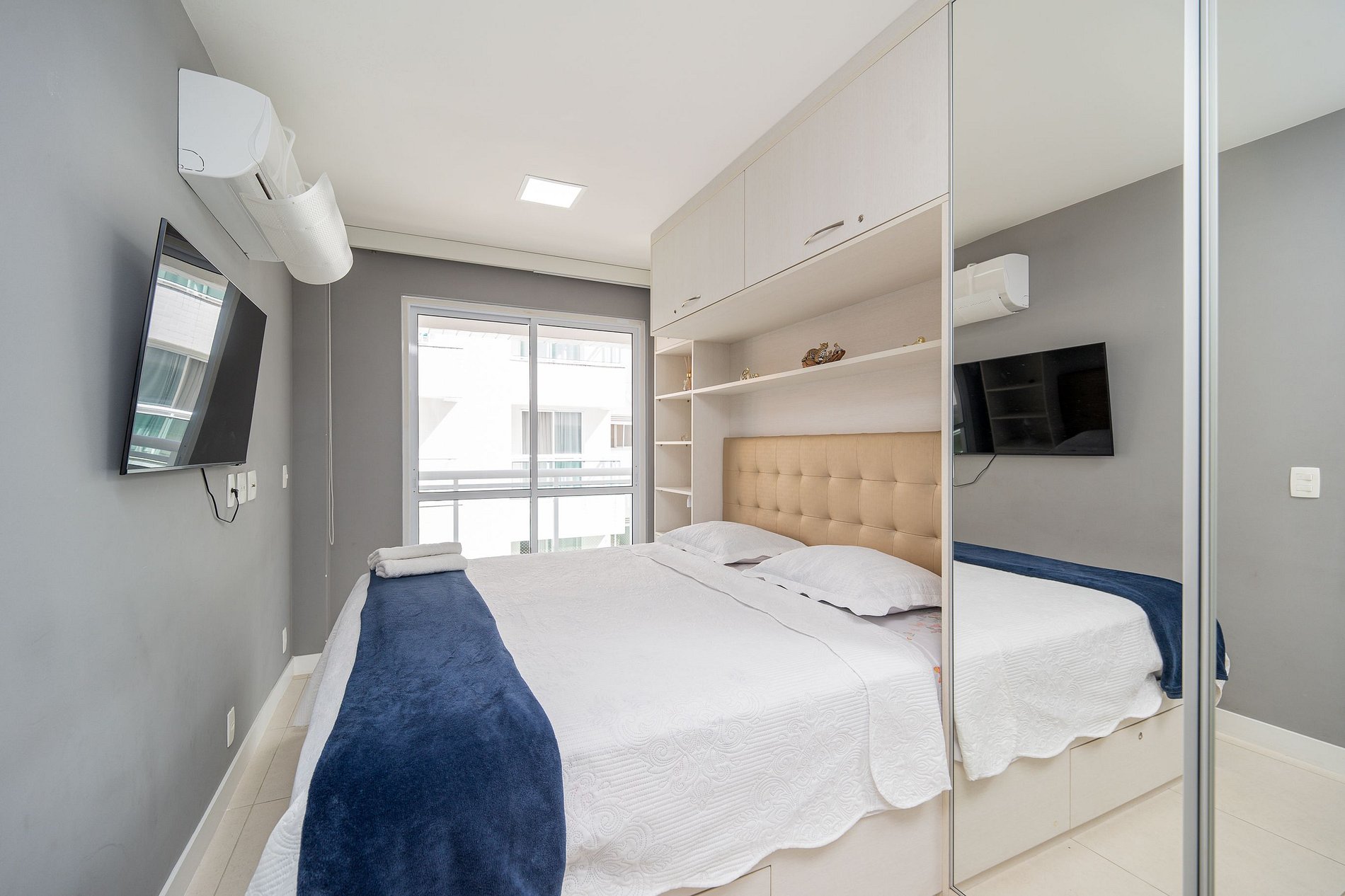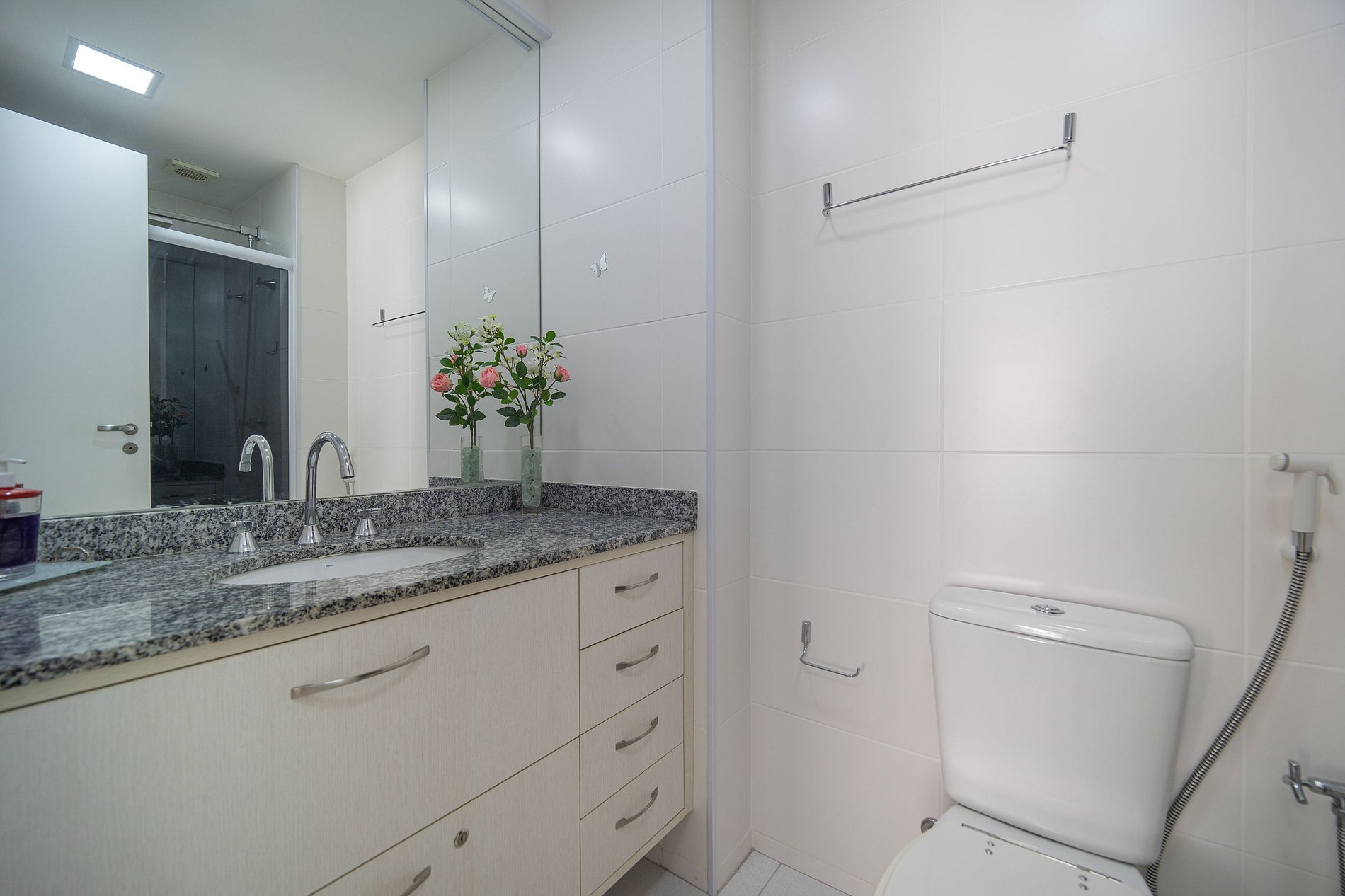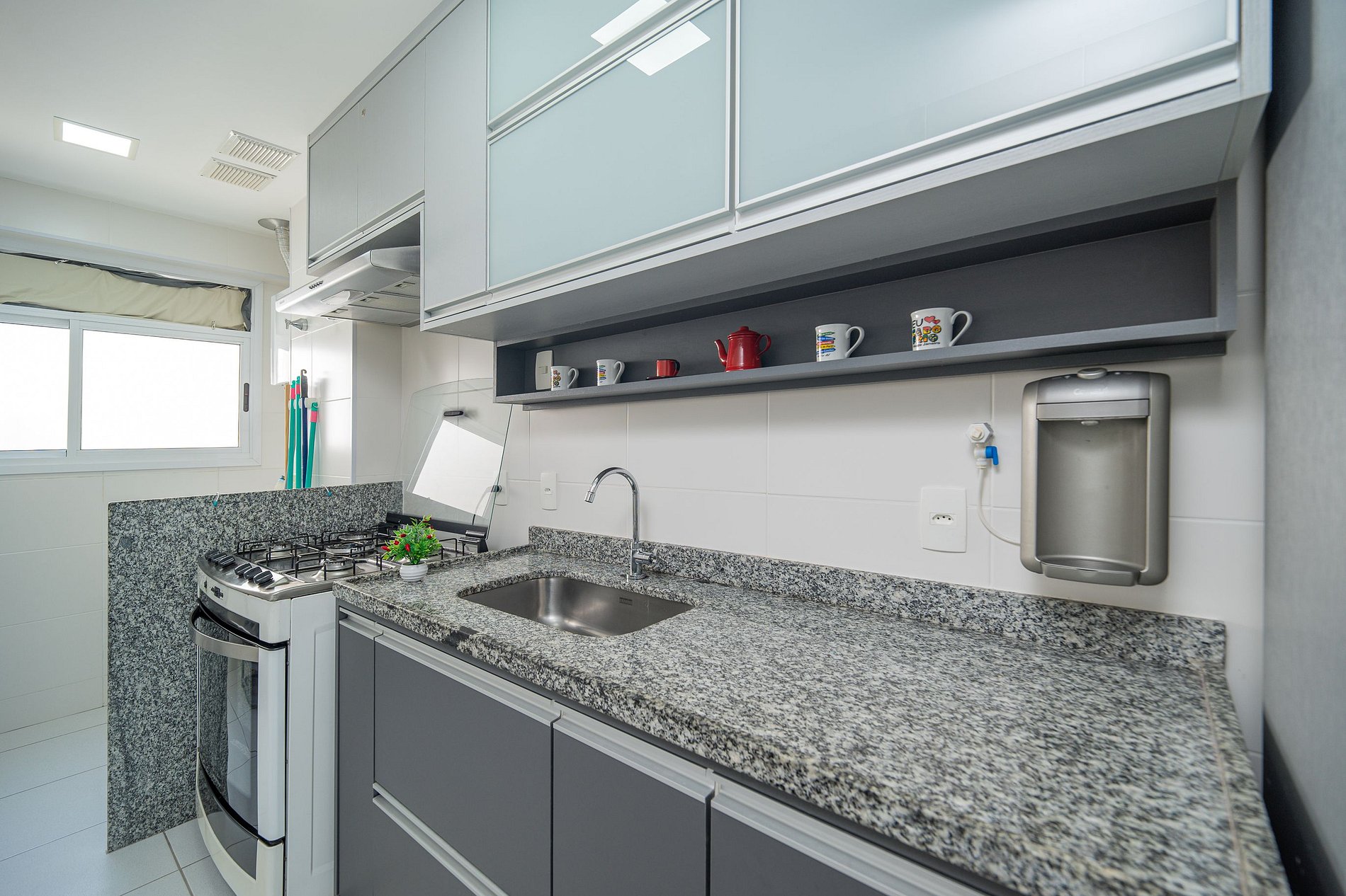 Oferecemos 3 quartos climatizados, sala, cozinha equipada e uma ampla varanda. Além disso, nosso prédio possui 2 vagas de garagem, piscina aquecida, sauna e churrasqueira (uso mediante agendamento);