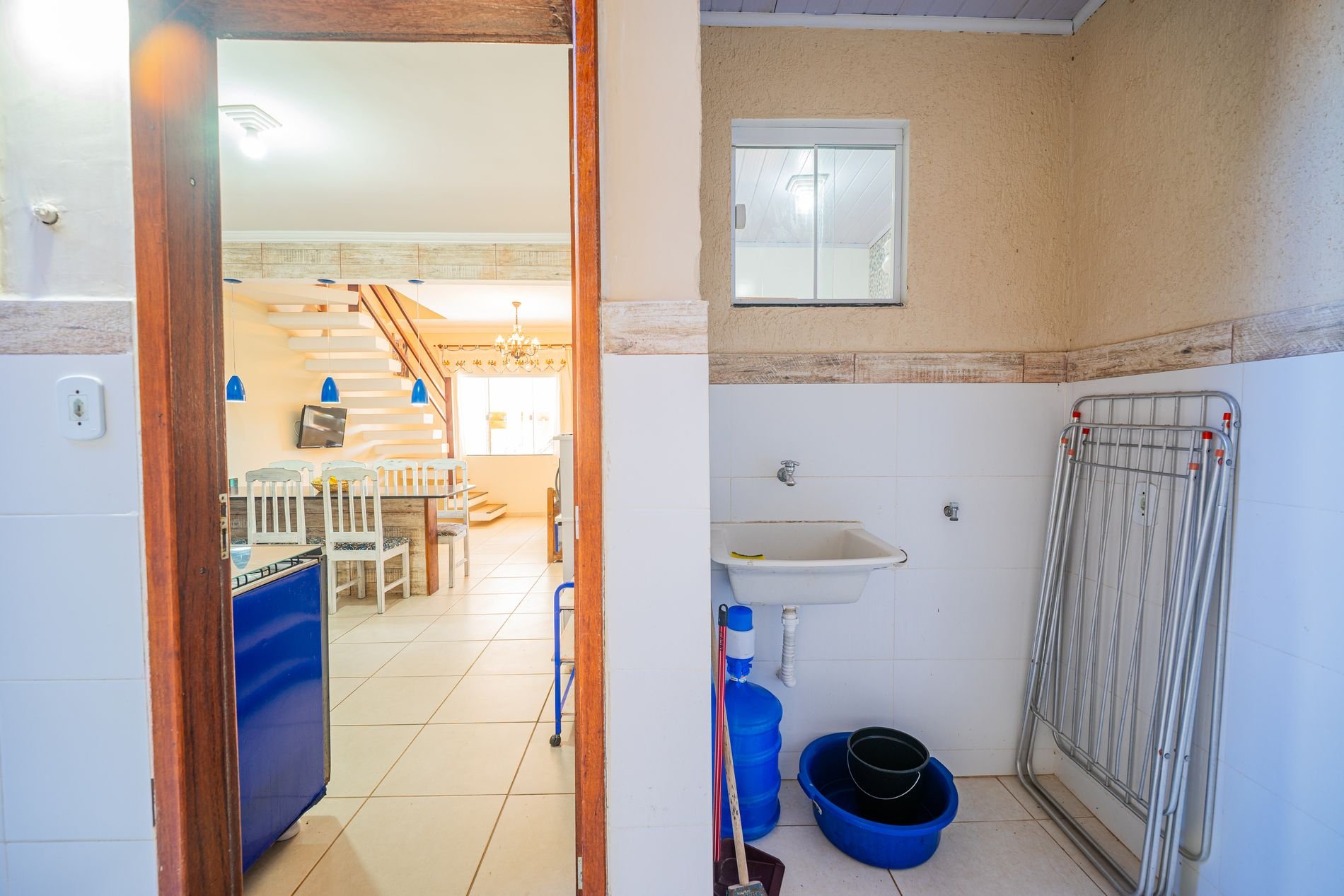 2 banheiros sociais (um no térreo e outro no andar superior);