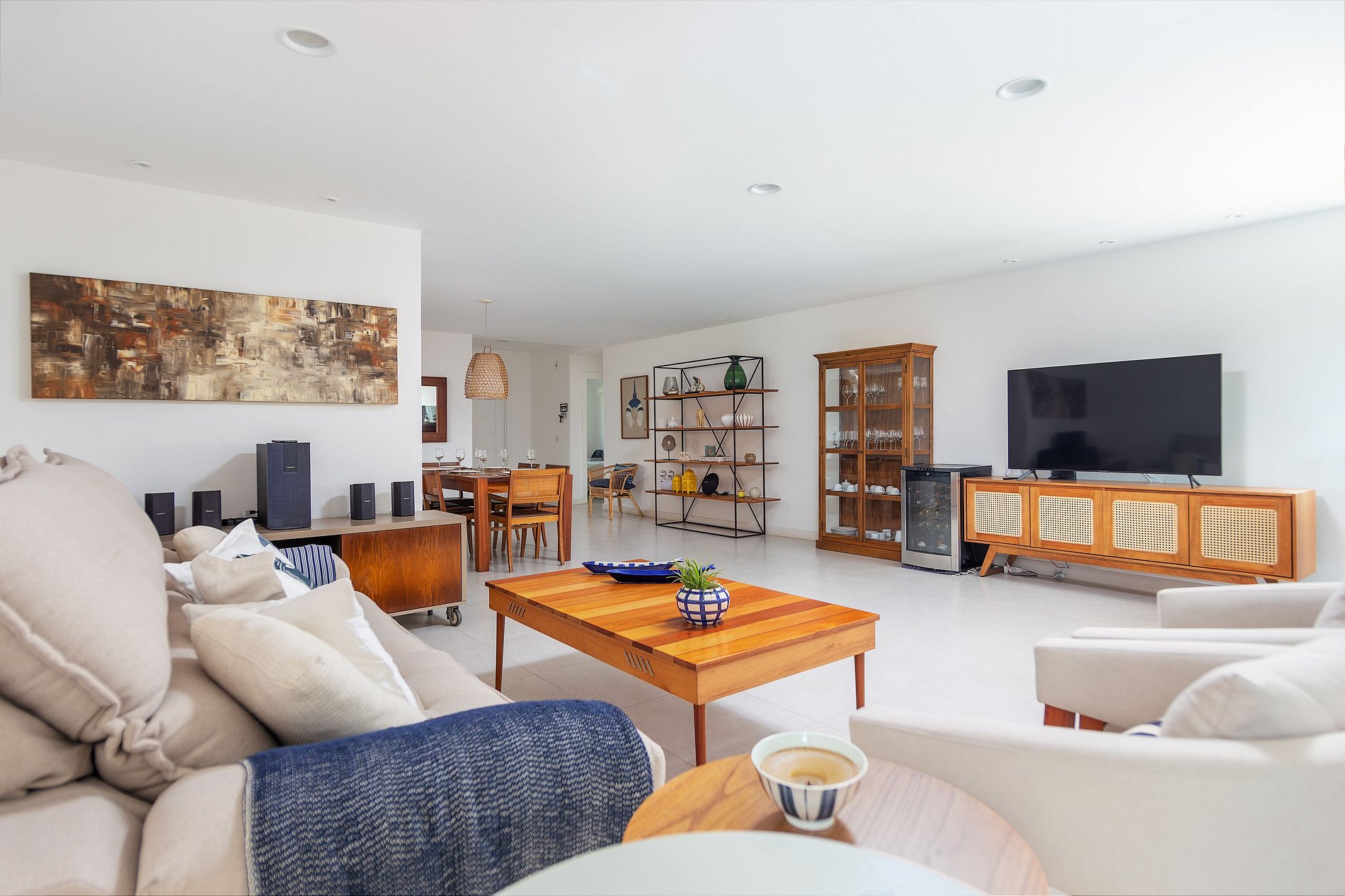 Uma casa arejada e confortável! Nossa acomodação possui conceito aberto, muito vidro e valoriza muito a luz natural.