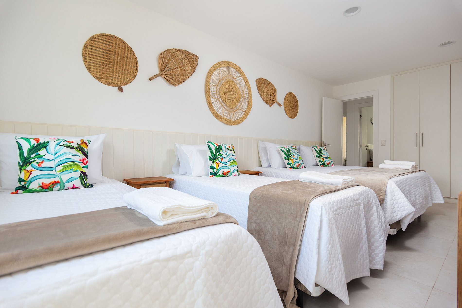 3º Suíte andar superior - Equipado com Ar condicionado, 1 cama Queen especial 1.76 (largura) reversível (pode separar e virar 2 camas solteiro de 0,88L cada; Obs Temos 1 colchão extra solteiro. (Total 3 pessoas)