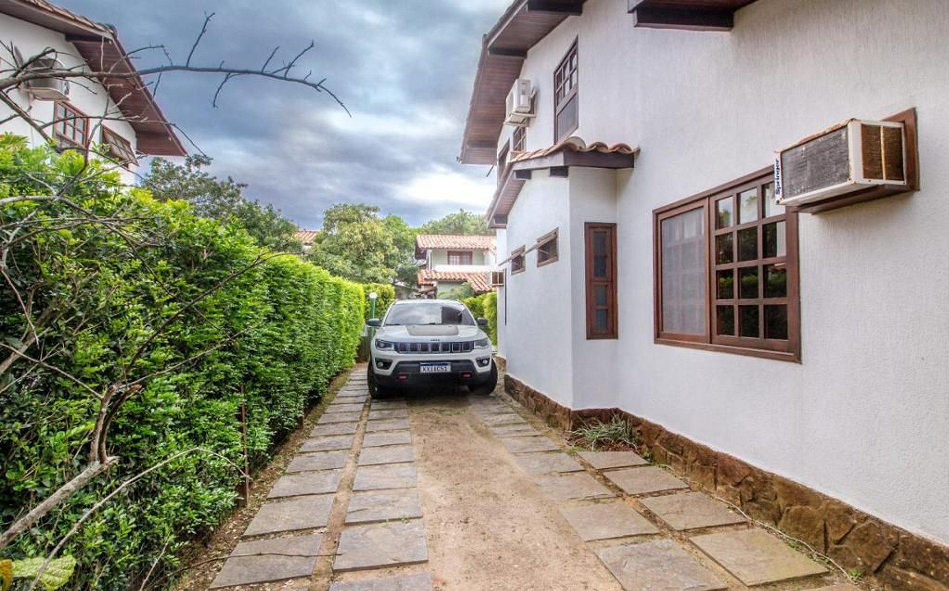 A casa possui 3 vagas para estacionamento em área não coberta, para carros pequenos;