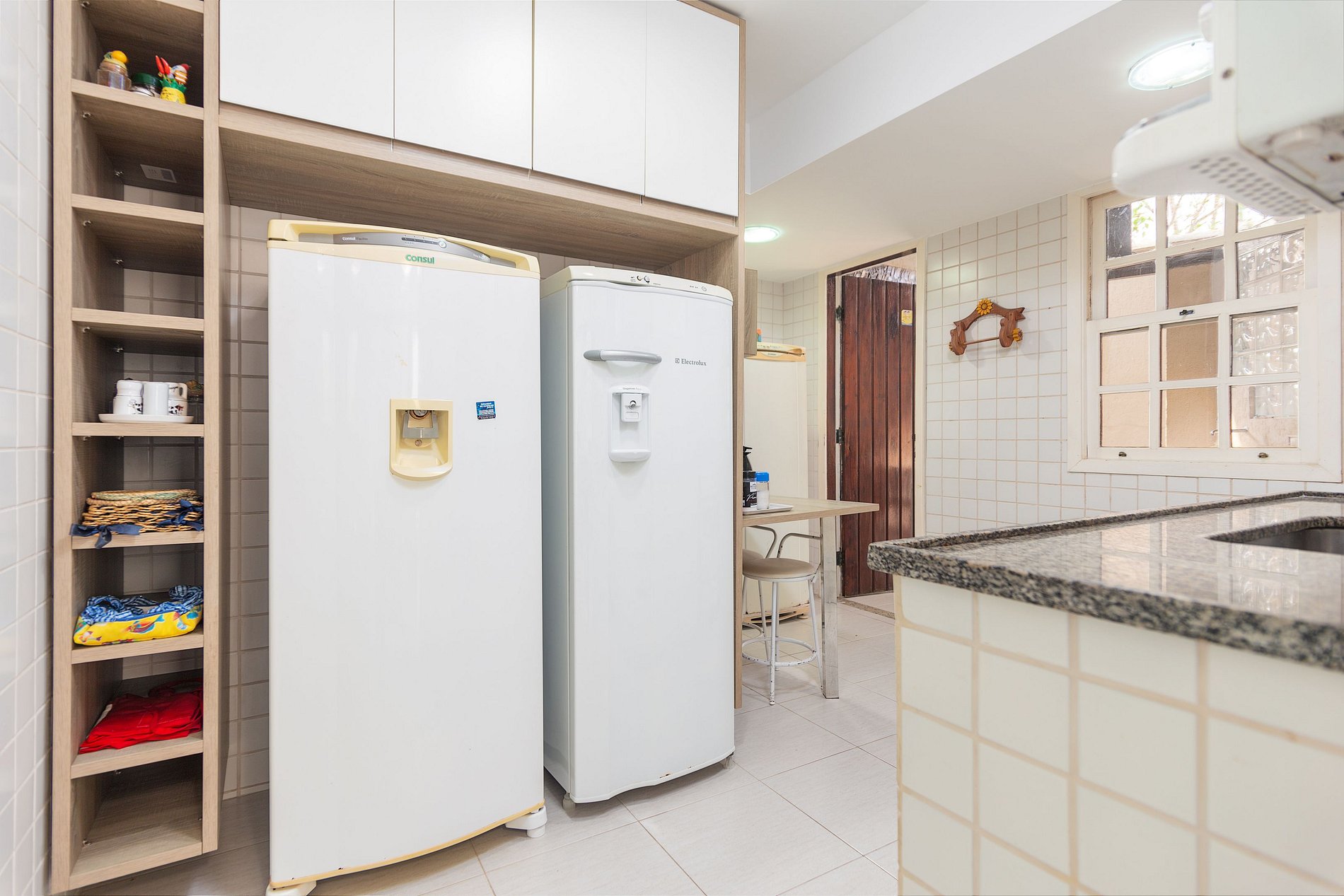 Cozinha completa, com utensílios e eletrodomésticos, fogão, forno, talheres, louças e utensílios e purificador de água para proporcionar funcionalidade;