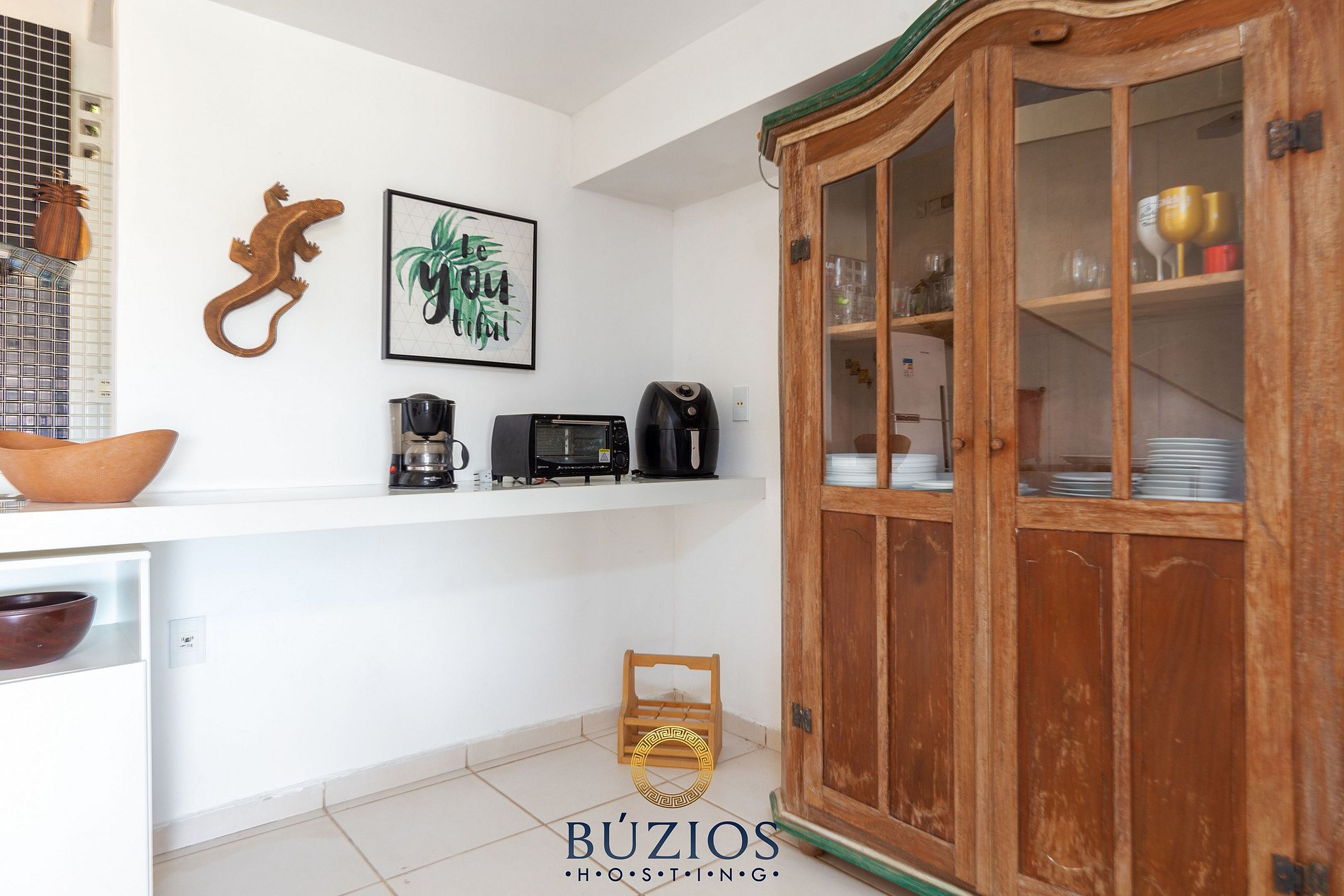 Na cozinha, temos todos os elementos que atendem perfeitamente aos hóspedes como panelas, vasilhames, acessórios, louças e talheres;