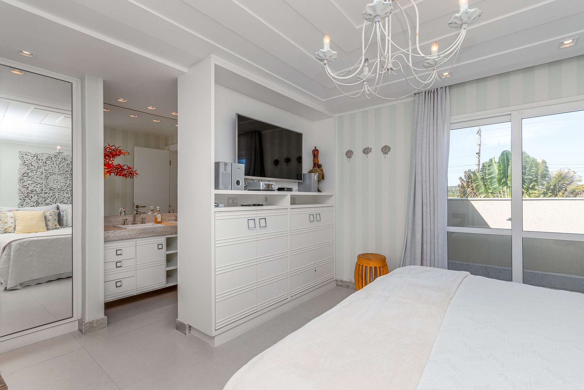 3º Suíte - Equipado com Ar condicionado, 1 cama Queen e banheiro com pia dupla; (Térrea)