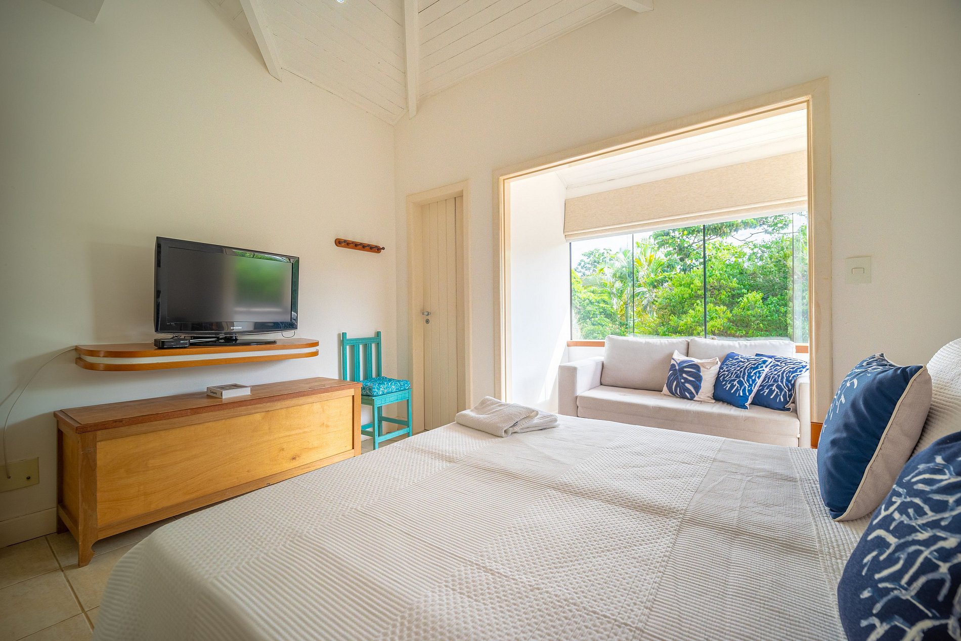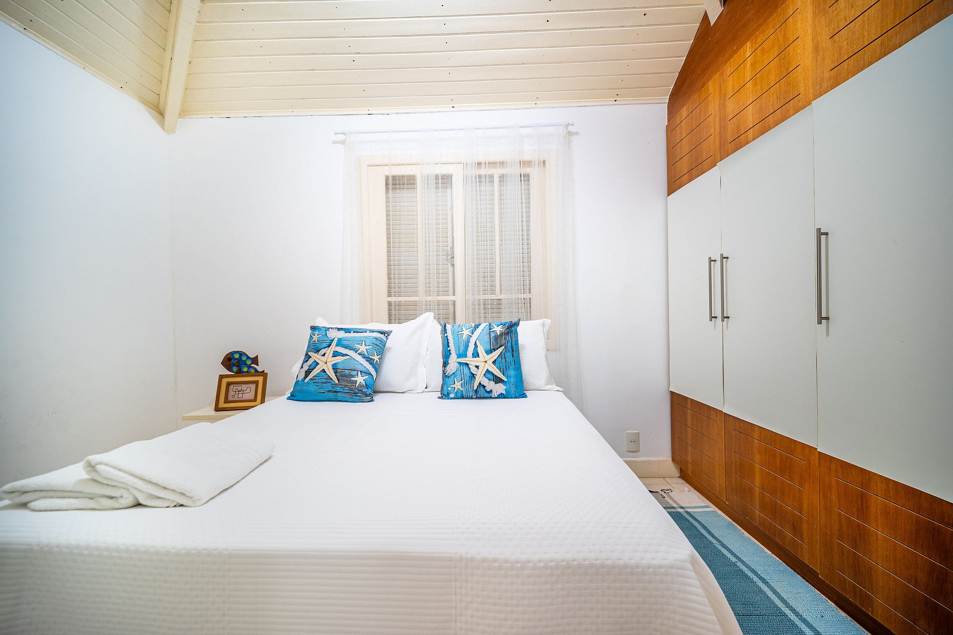 A casa possui 4 suítes climatizadas que acomodam até 10 pessoas: