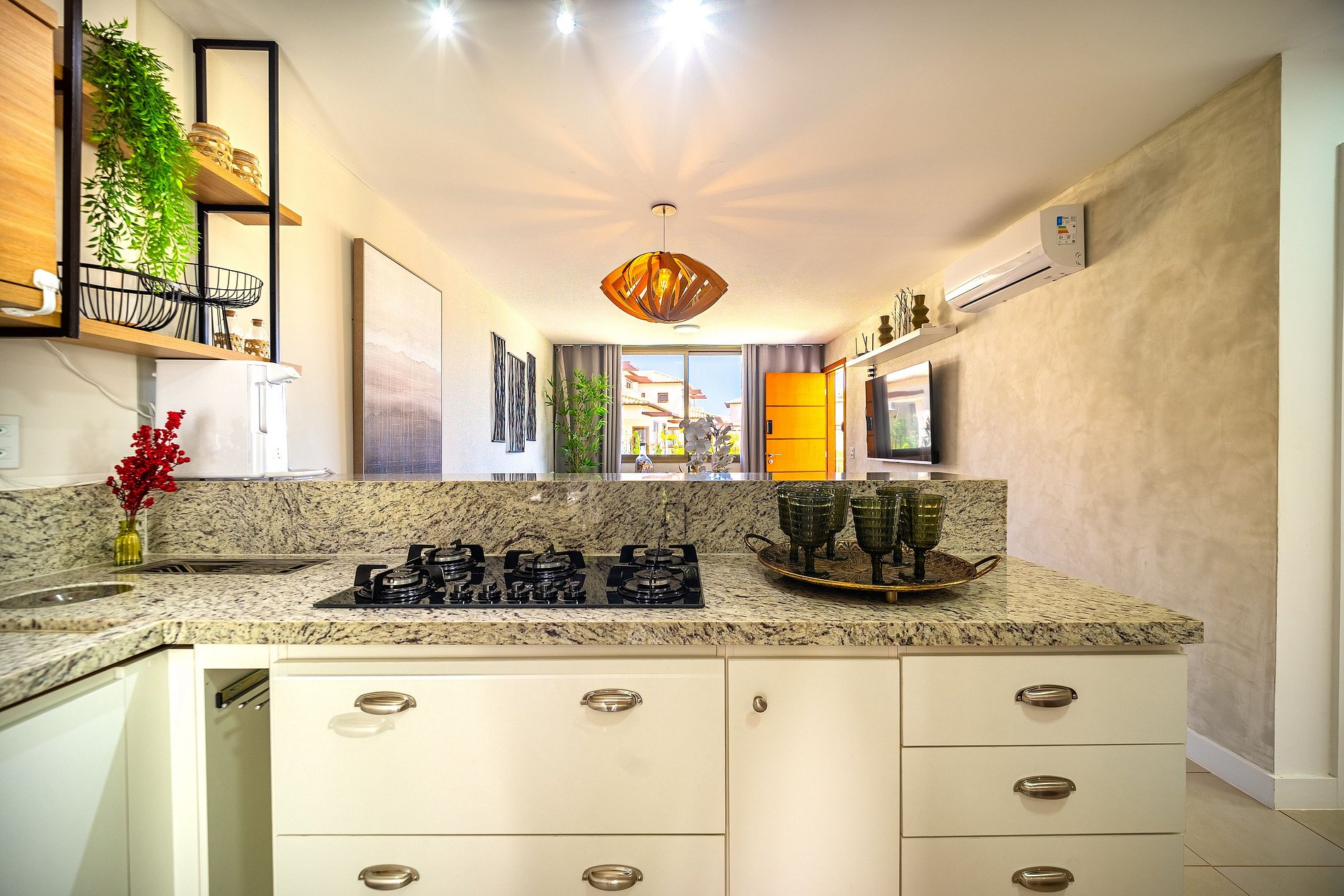 O imóvel conta com um design aconchegante, proporcionando um ambiente sofisticado e confortável. A sala de estar climatizada se conecta com a cozinha totalmente equipada, ideal para quem gosta de preparar suas próprias refeições. Os quartos são climatizados e bem decorados para oferecer noites de descanso tranquilas após um dia aproveitando as belezas de Búzios;