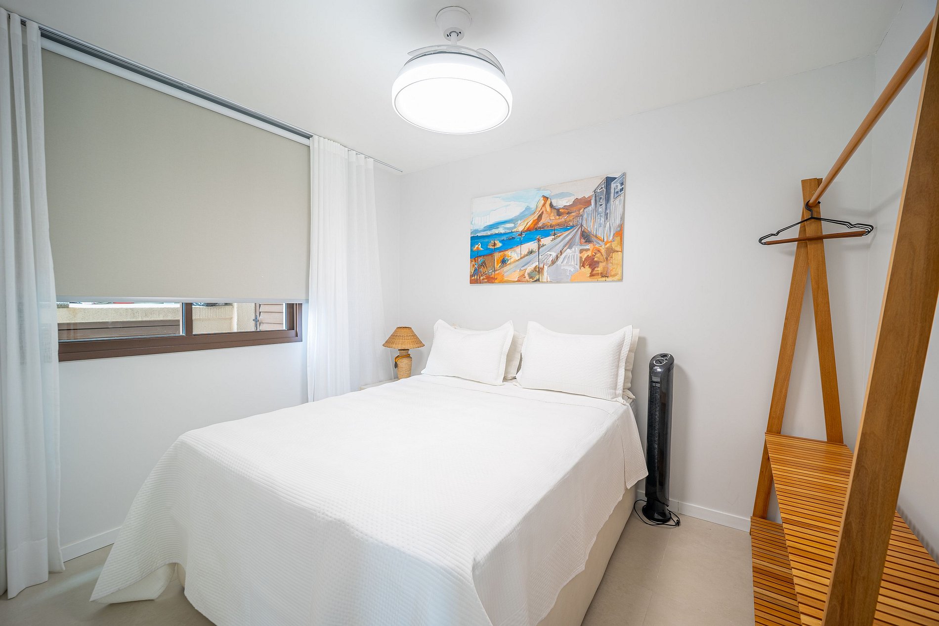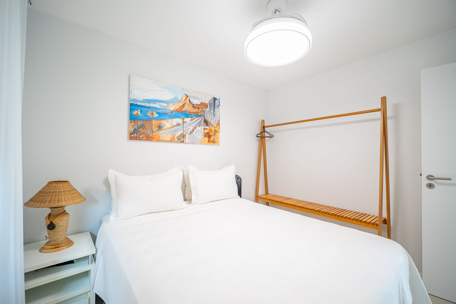1º Suíte superior: Cama casal, área para home office, guarda roupa, ar condicionado e varanda com vista para o canal (2 pessoas);