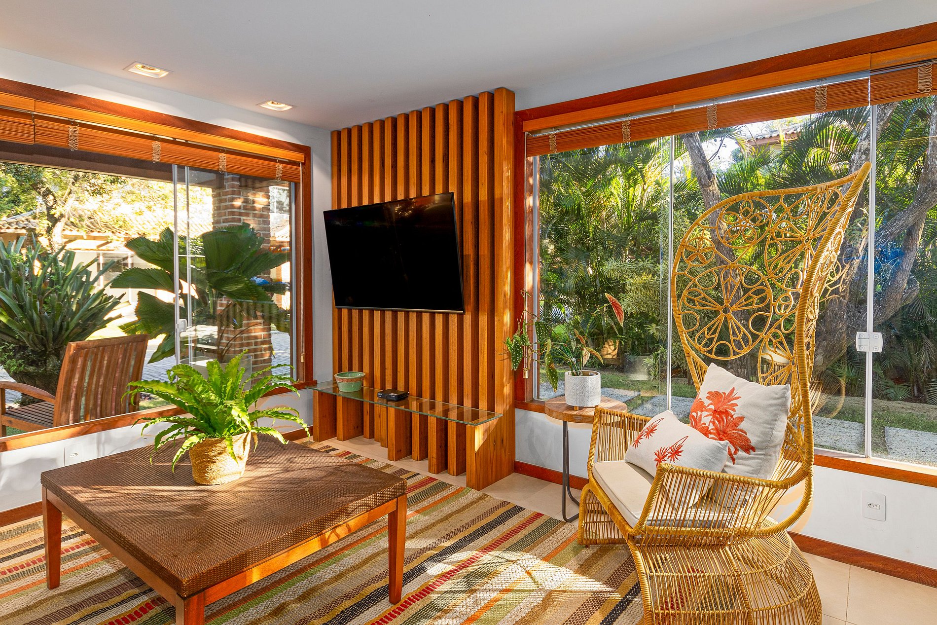 Além da área gourmet com churrasqueira privativa, a casa tem 4 suítes climatizadas, cozinha completa, sala ampla e confortável;