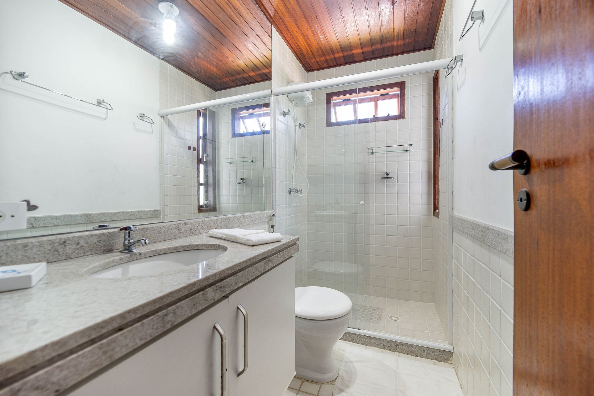 4 suítes climatizadas e 1 lavabo social, acomodando até 10 pessoas conforme configuração: