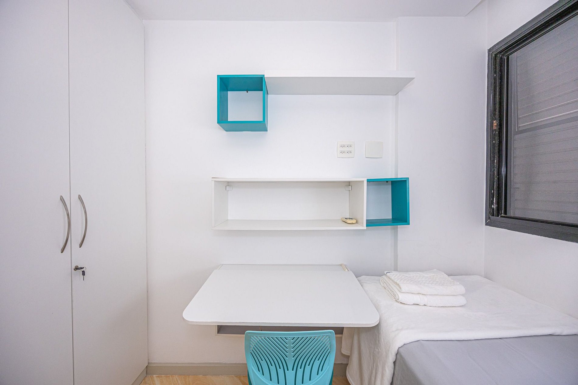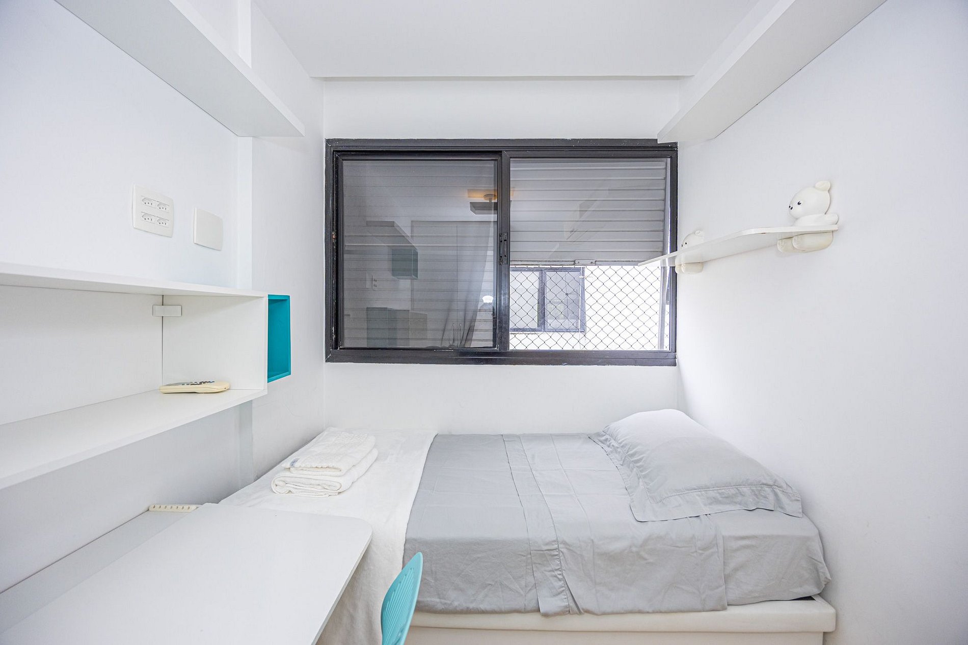 2º Quarto: Beliche de solteiro, ar condicionado, guarda roupa e espaço para home office (2 pessoas);