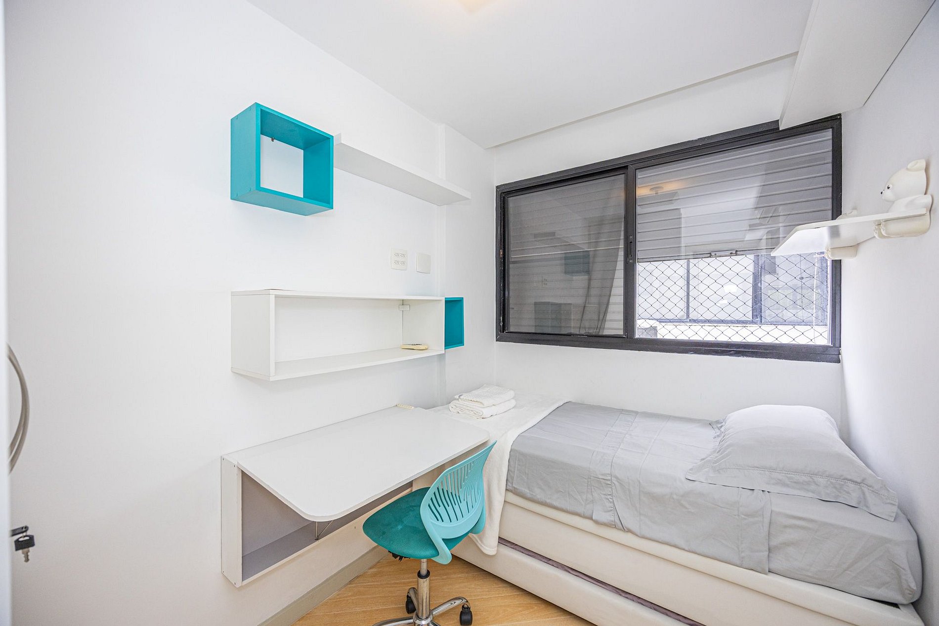 2º Quarto: Beliche de solteiro, ar condicionado, guarda roupa e espaço para home office (2 pessoas);